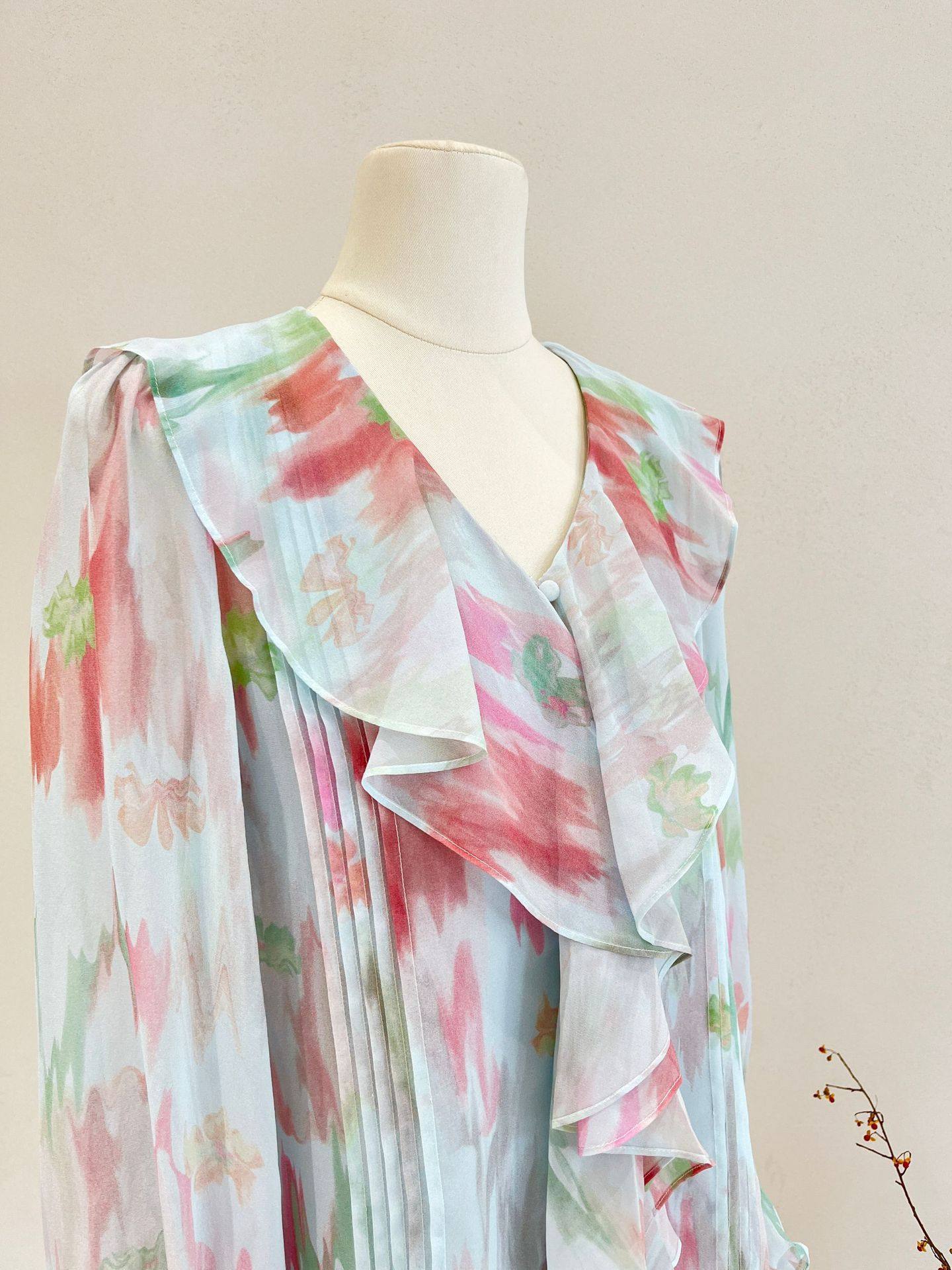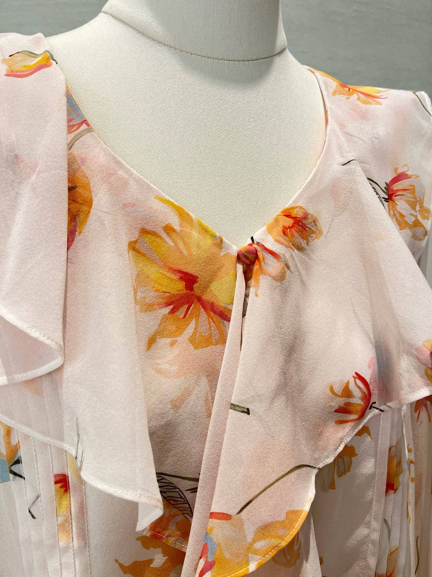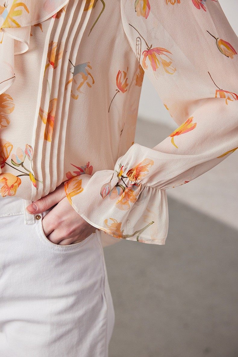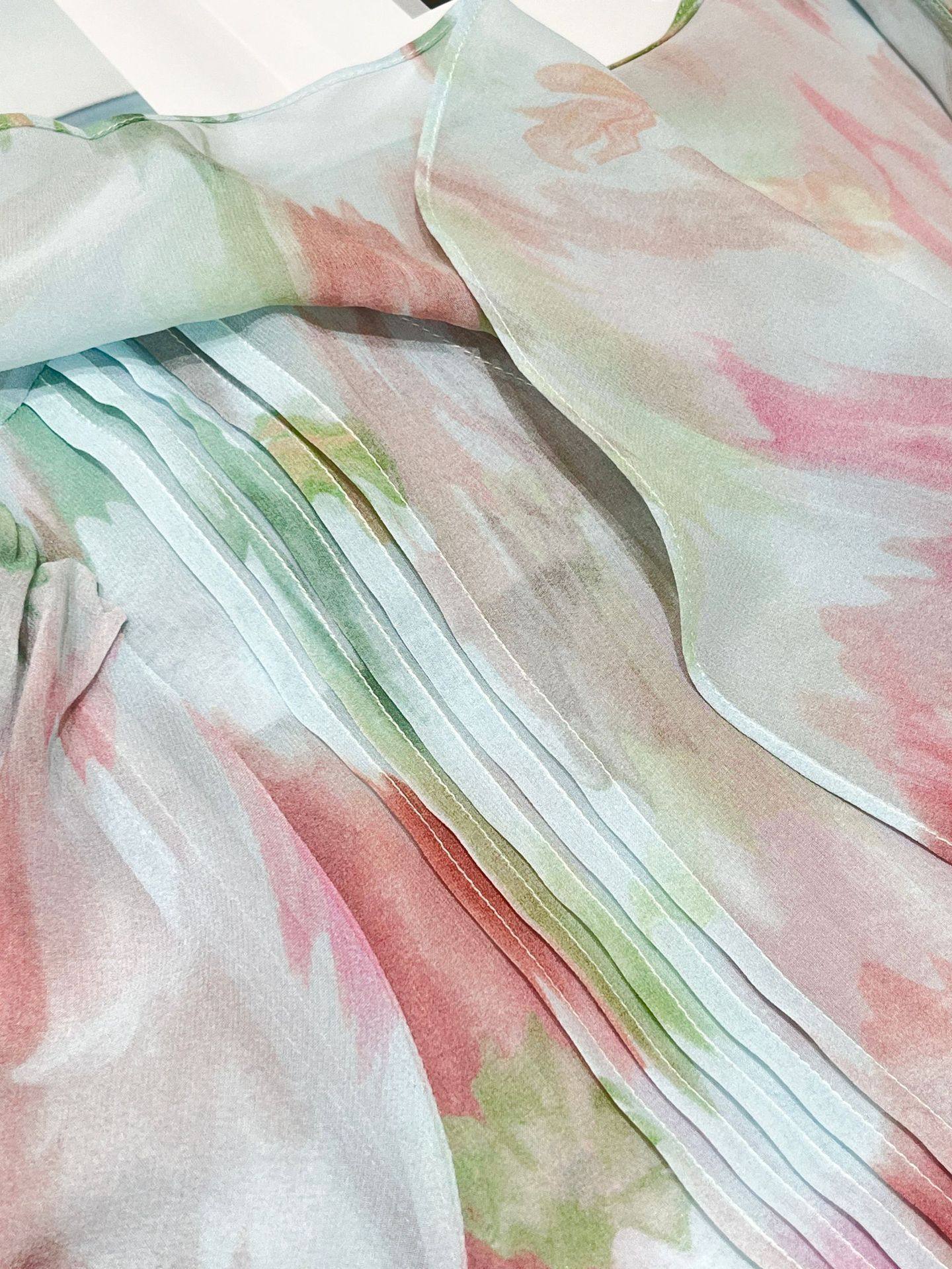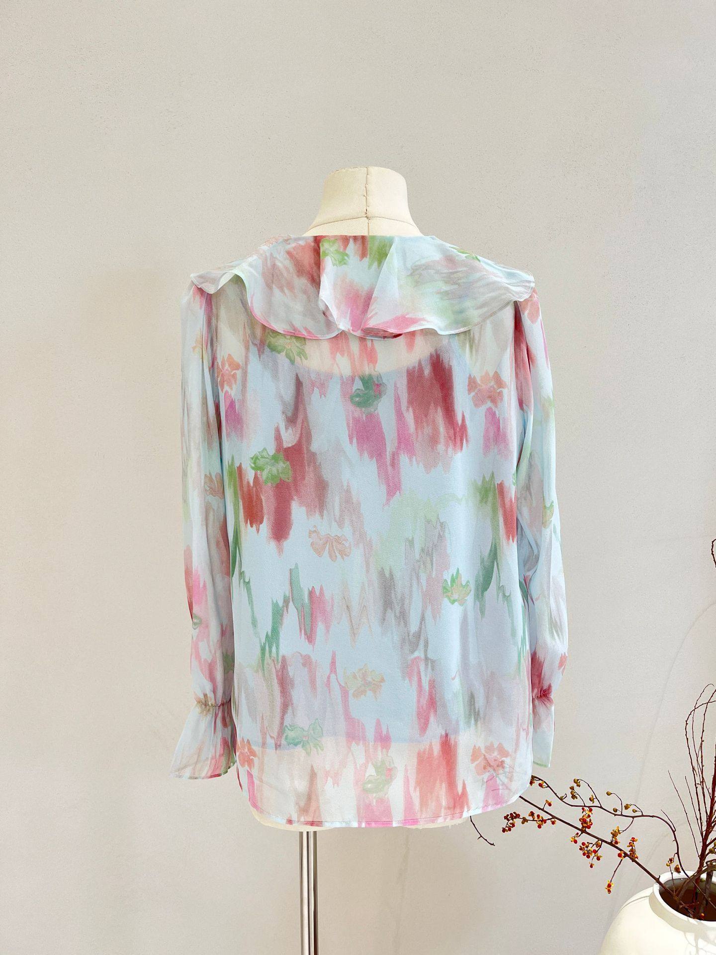 真丝衬衫女2025春夏新款乔其印花两件套荷叶边领100%桑蚕丝上衣
