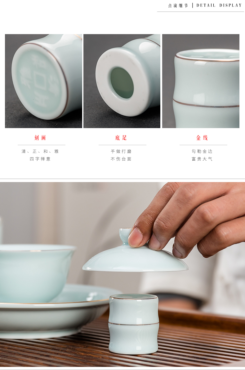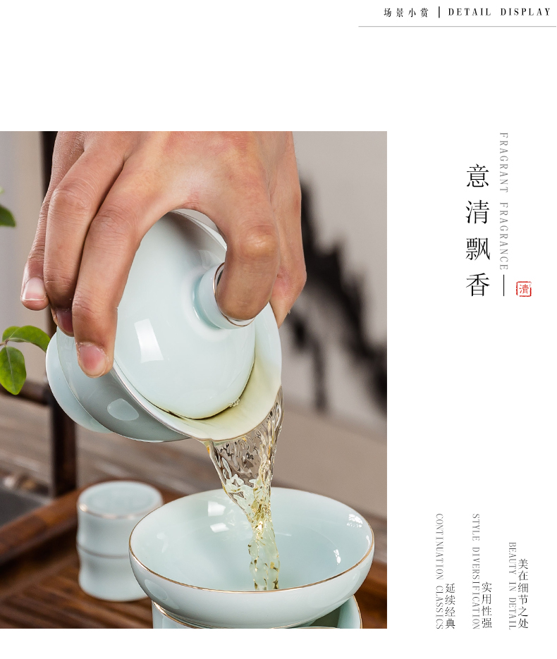 永利汇整套影青瓷功夫茶具陶瓷茶具套装盖碗茶漏茶杯彼岸花开礼盒高档