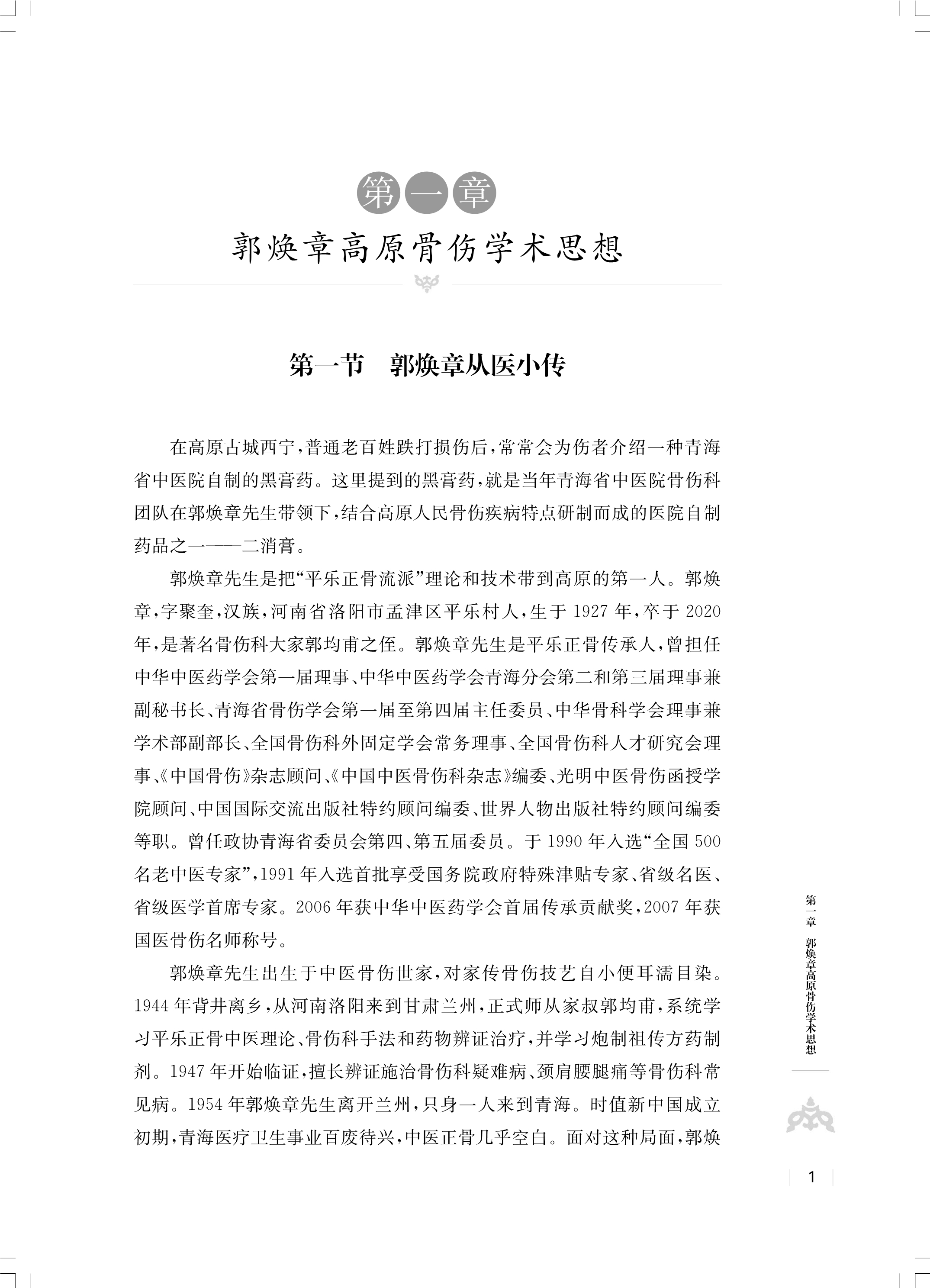 本书旨在向广大读者介绍青海省中医院骨伤科大家郭焕章先生在高原中医骨伤科领域的学术思想及实践应用,推广高原中医骨伤科的理论特点和临床特色。本书的内容涵盖了骨伤科的基础知识、证候分析、诊疗方法及预防保健等方面,为从事中医骨伤科临床与学术研究等提供学习参考。本书通过理论分析和临床案例,总结并展示了郭焕章先生在高原中医骨伤科领域的学术贡献与临床成就,在中医骨伤科学中具有重要的学术及实践参考价值。