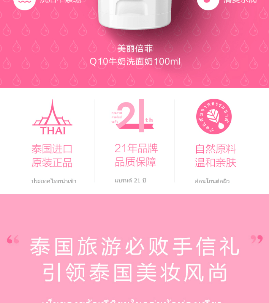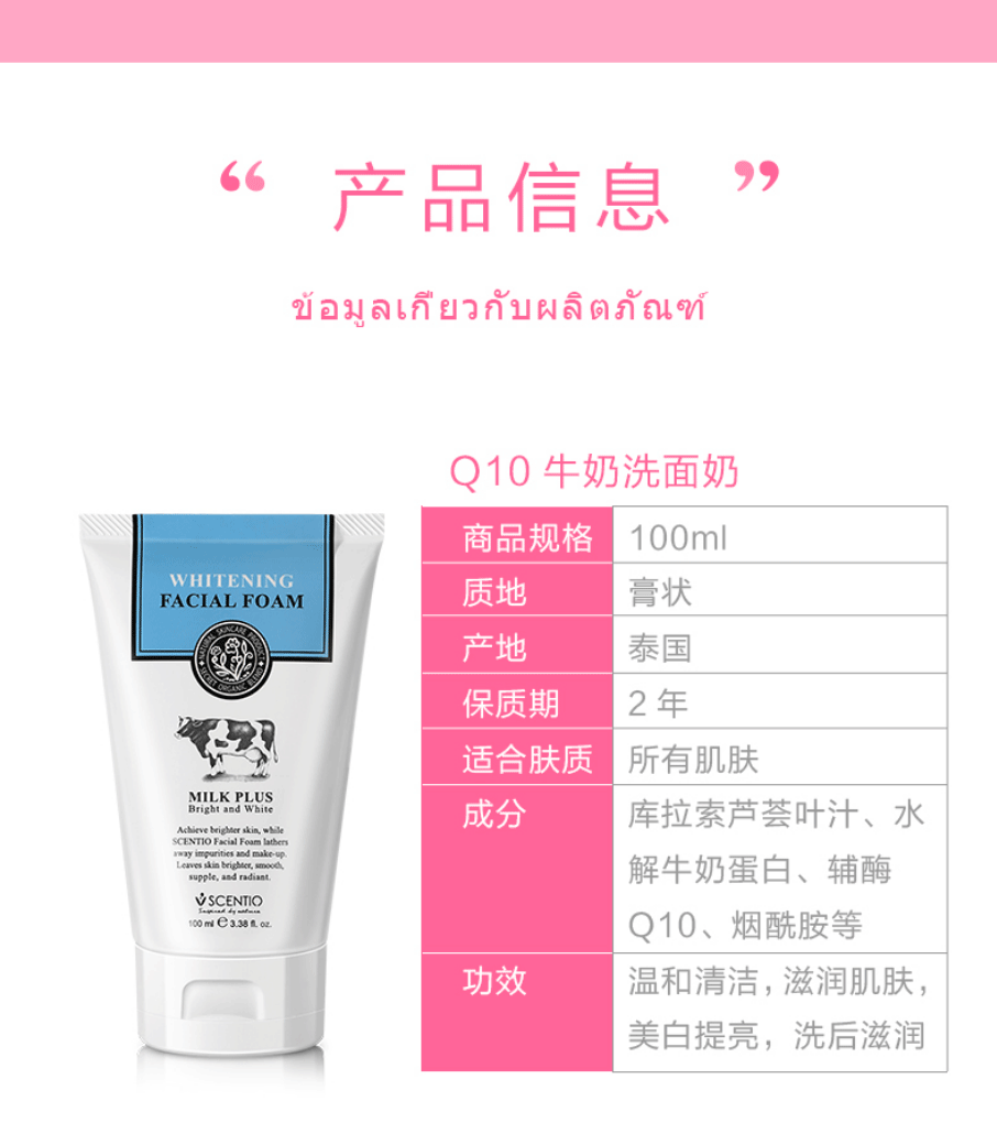 【美妆个护】泰国beauty buffet牛奶洗面奶女Q10氨基酸深层清洁控油补水洁面乳
