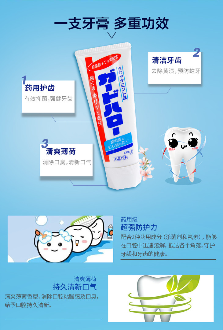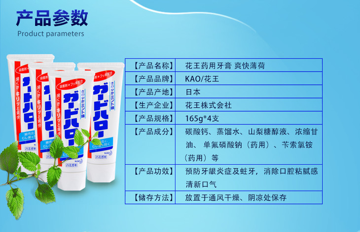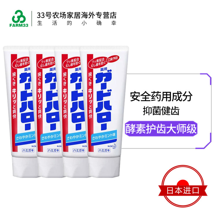 【花王】。保税 KAO/花王酵素牙膏165g*4支 爽快薄荷亮白去渍