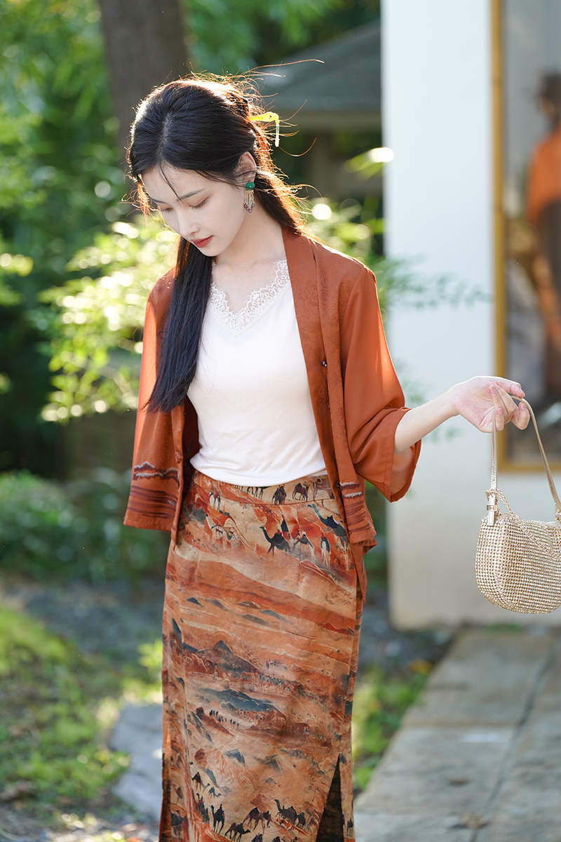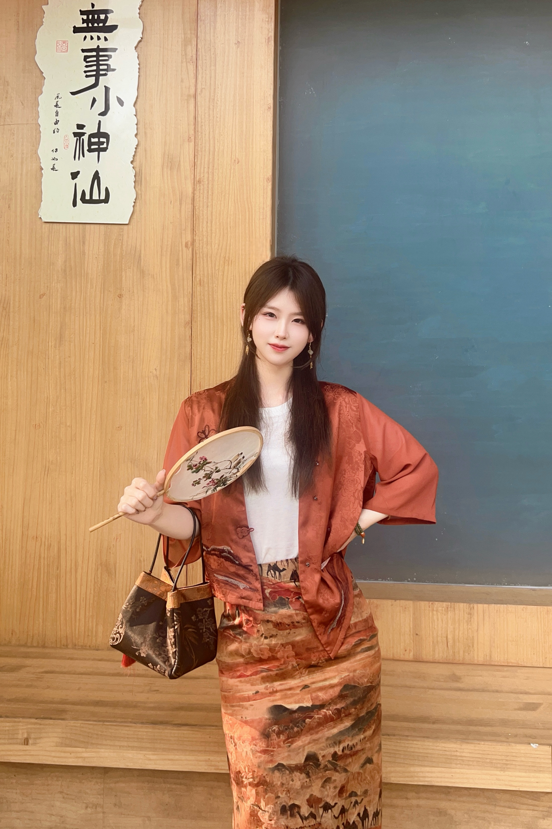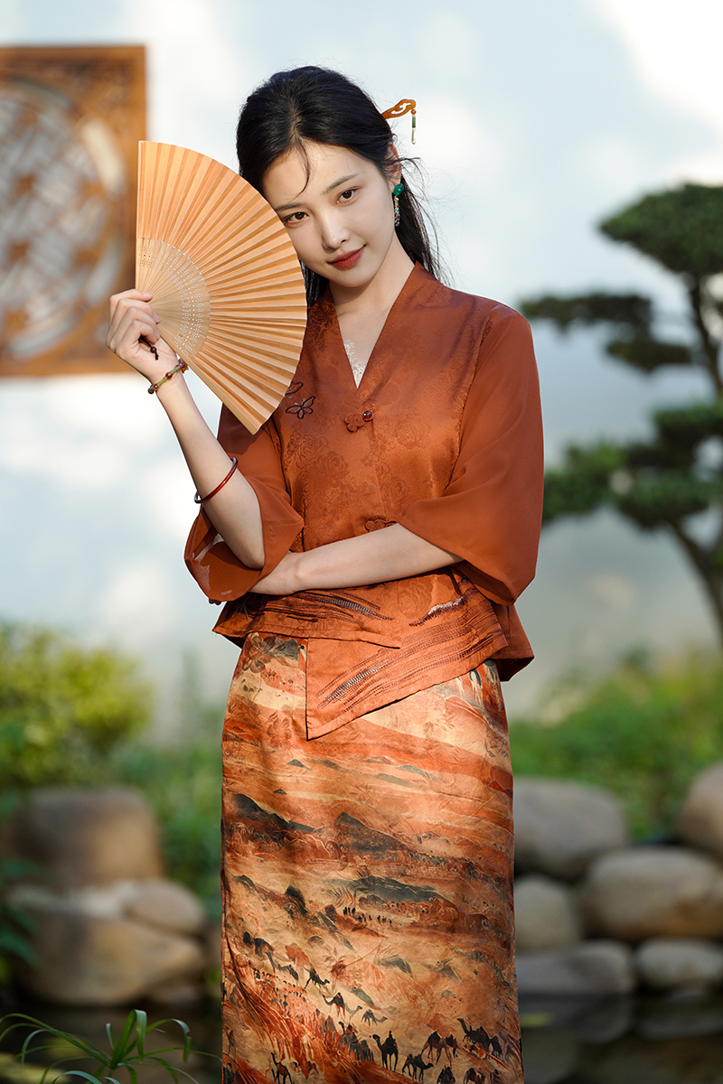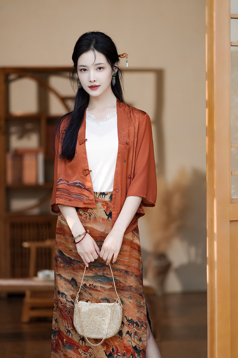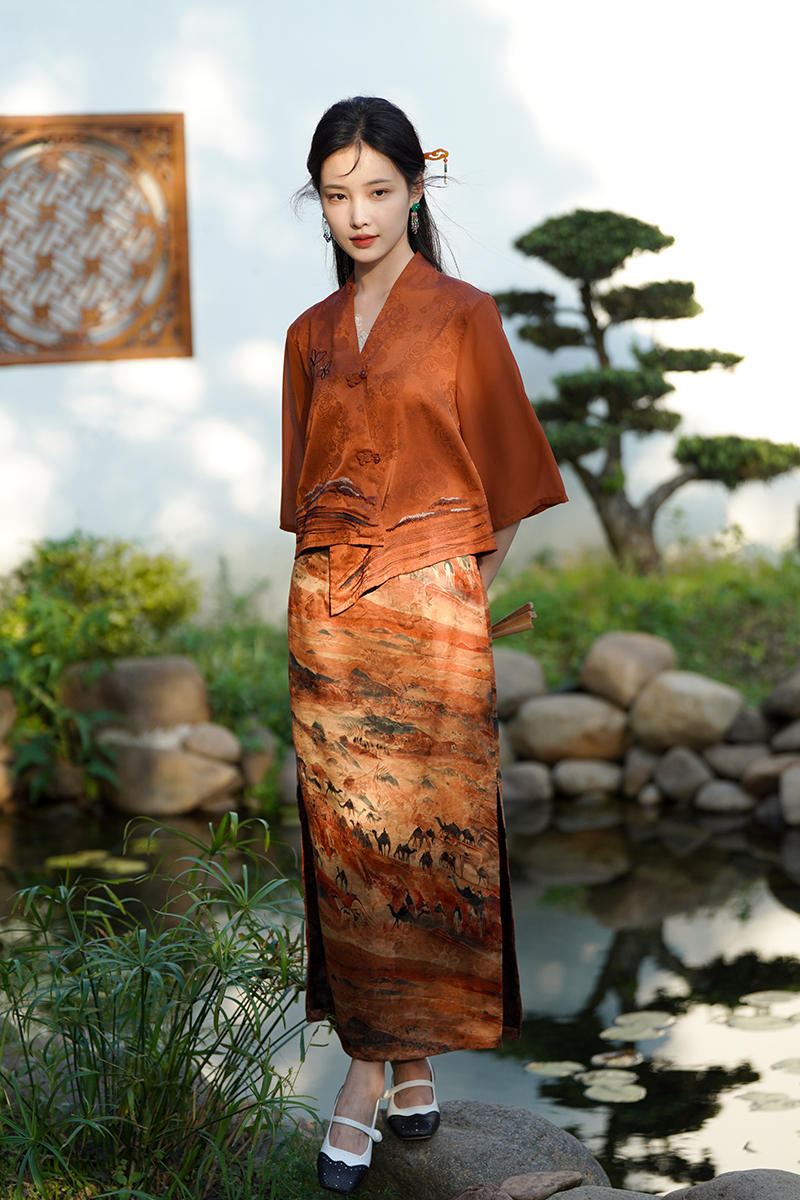 半裙推荐:模特搭配的是#25姆米暗纹提花香云纱筒裙『丝绸之路』