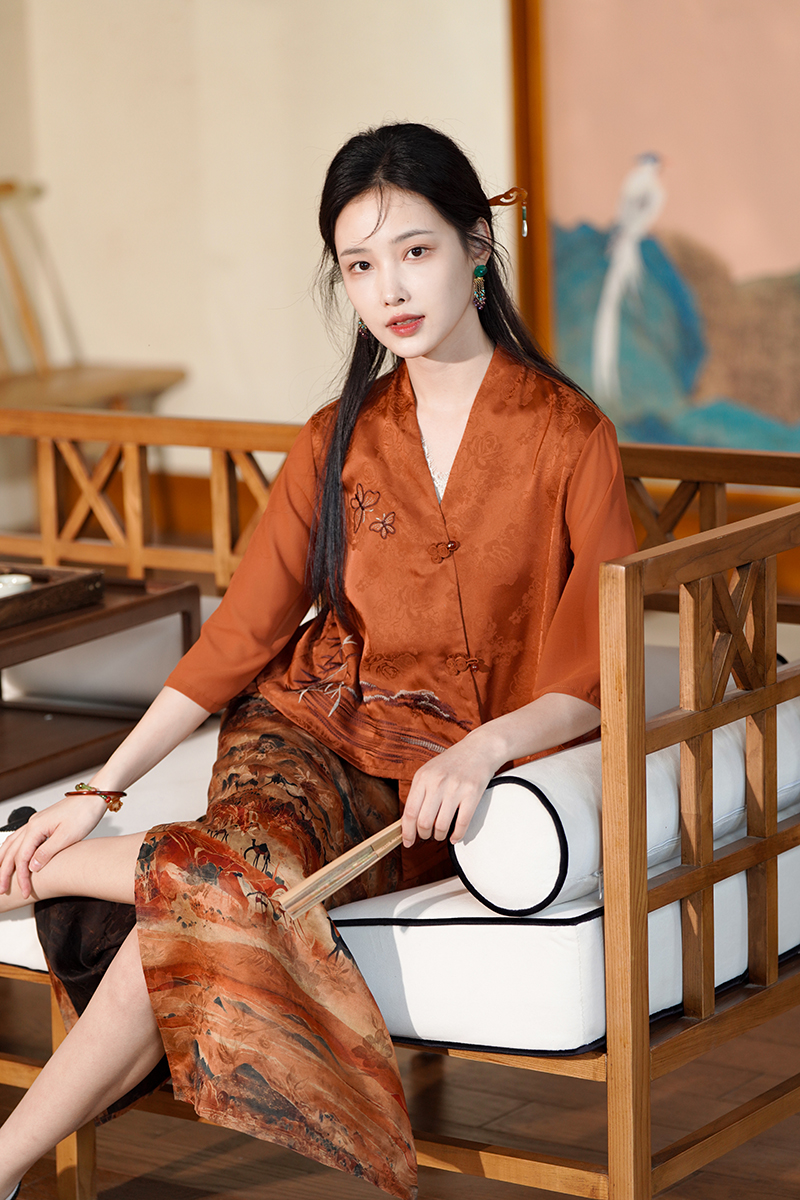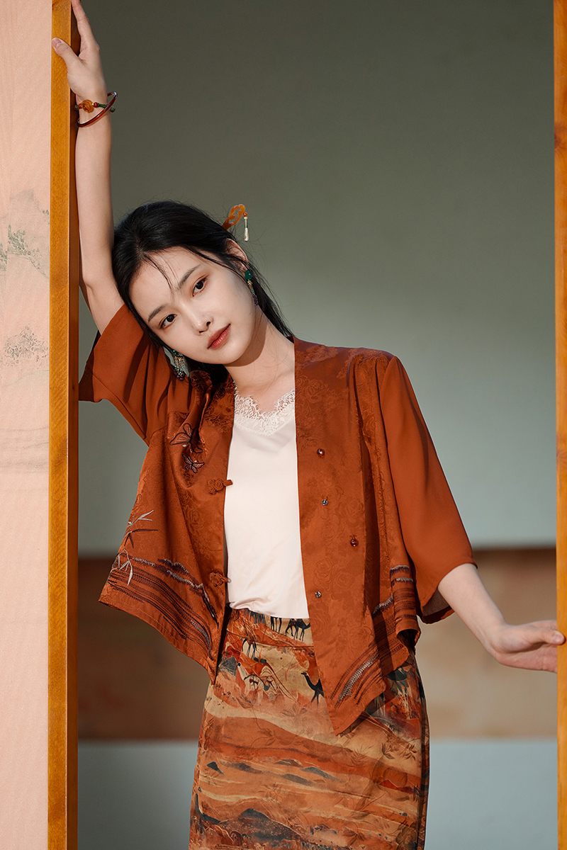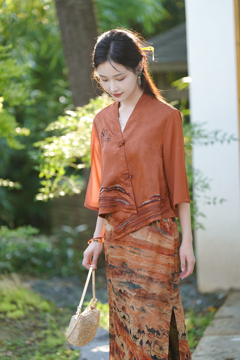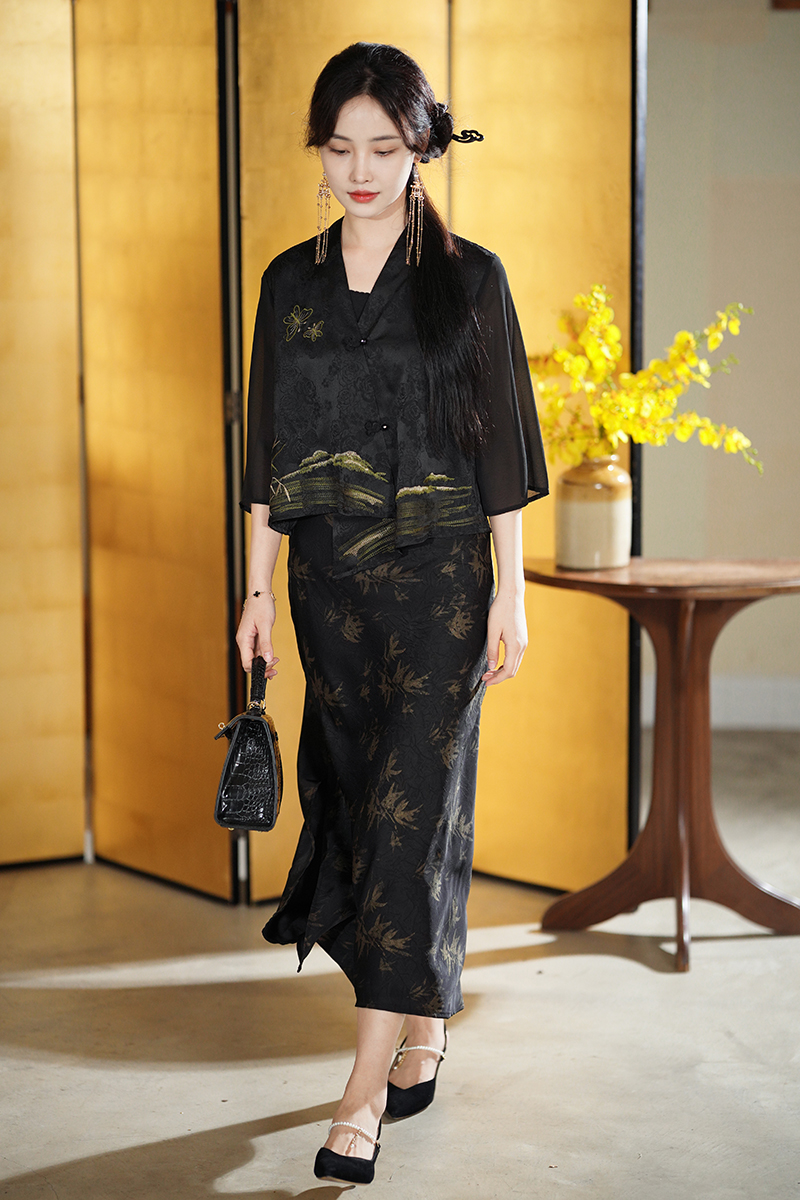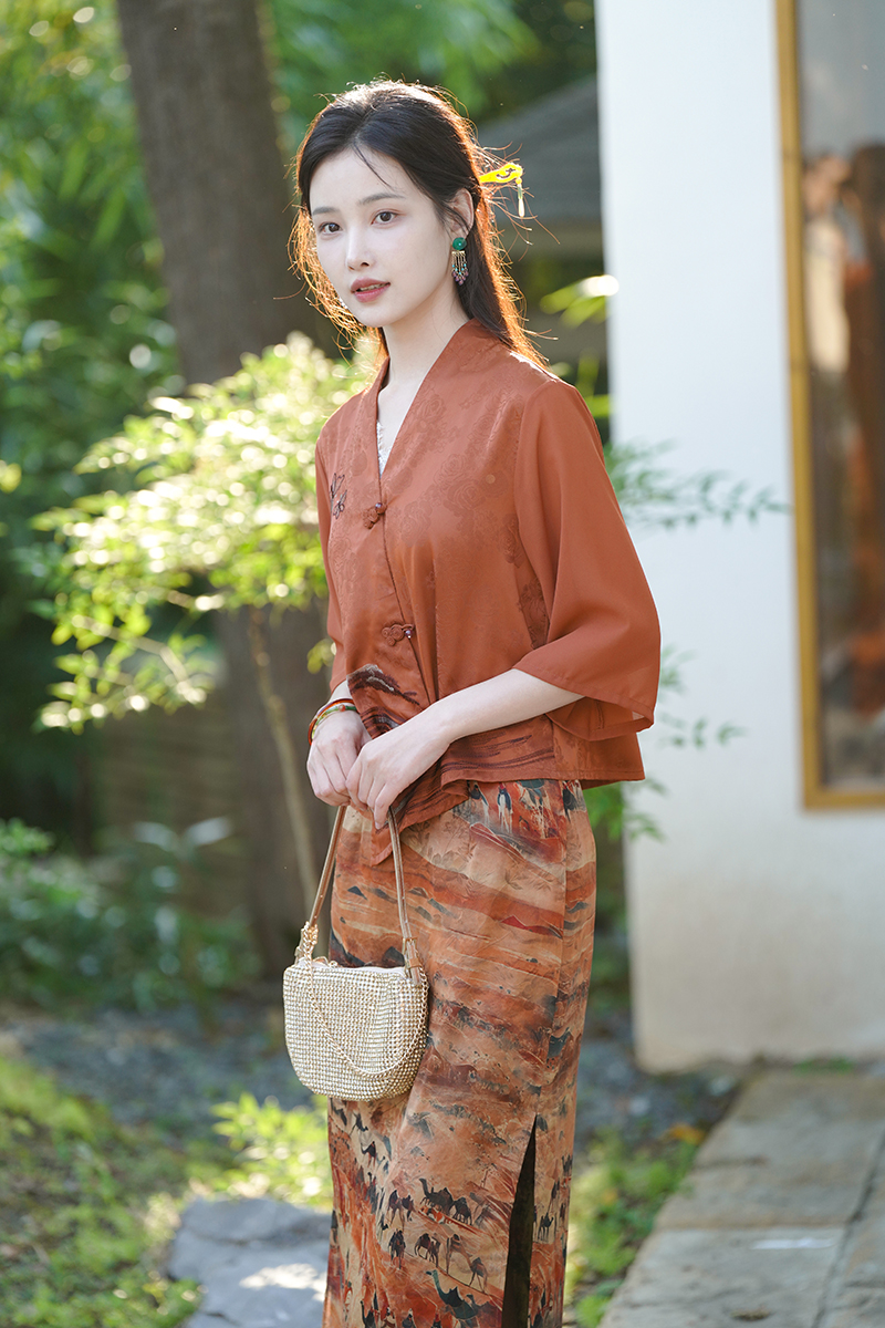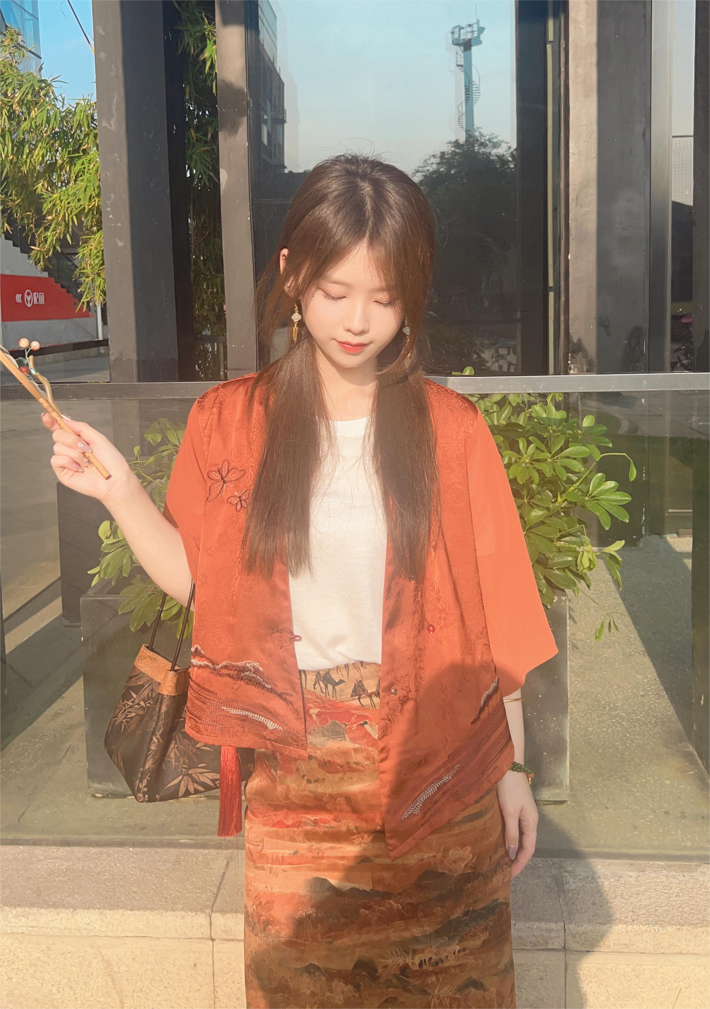 半裙推荐:模特搭配的是#25姆米暗纹提花香云纱筒裙『丝绸之路』
