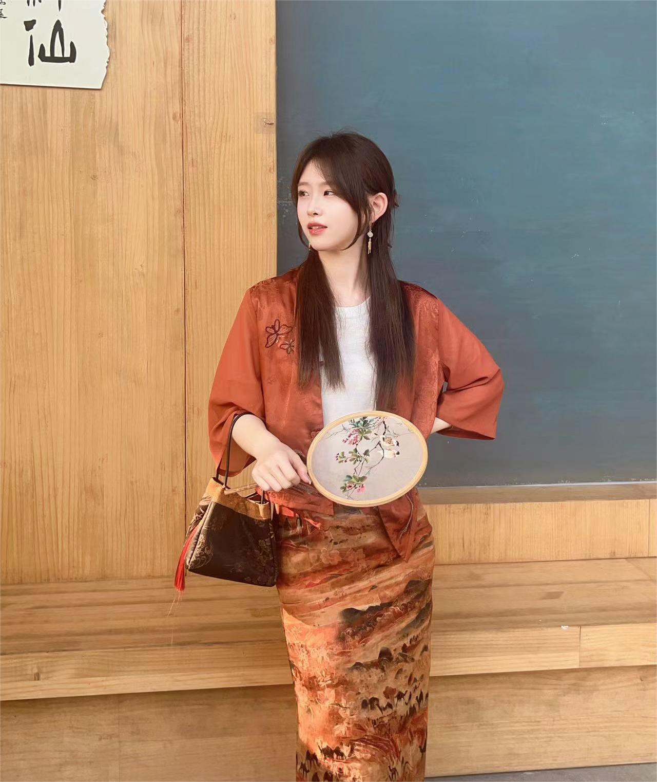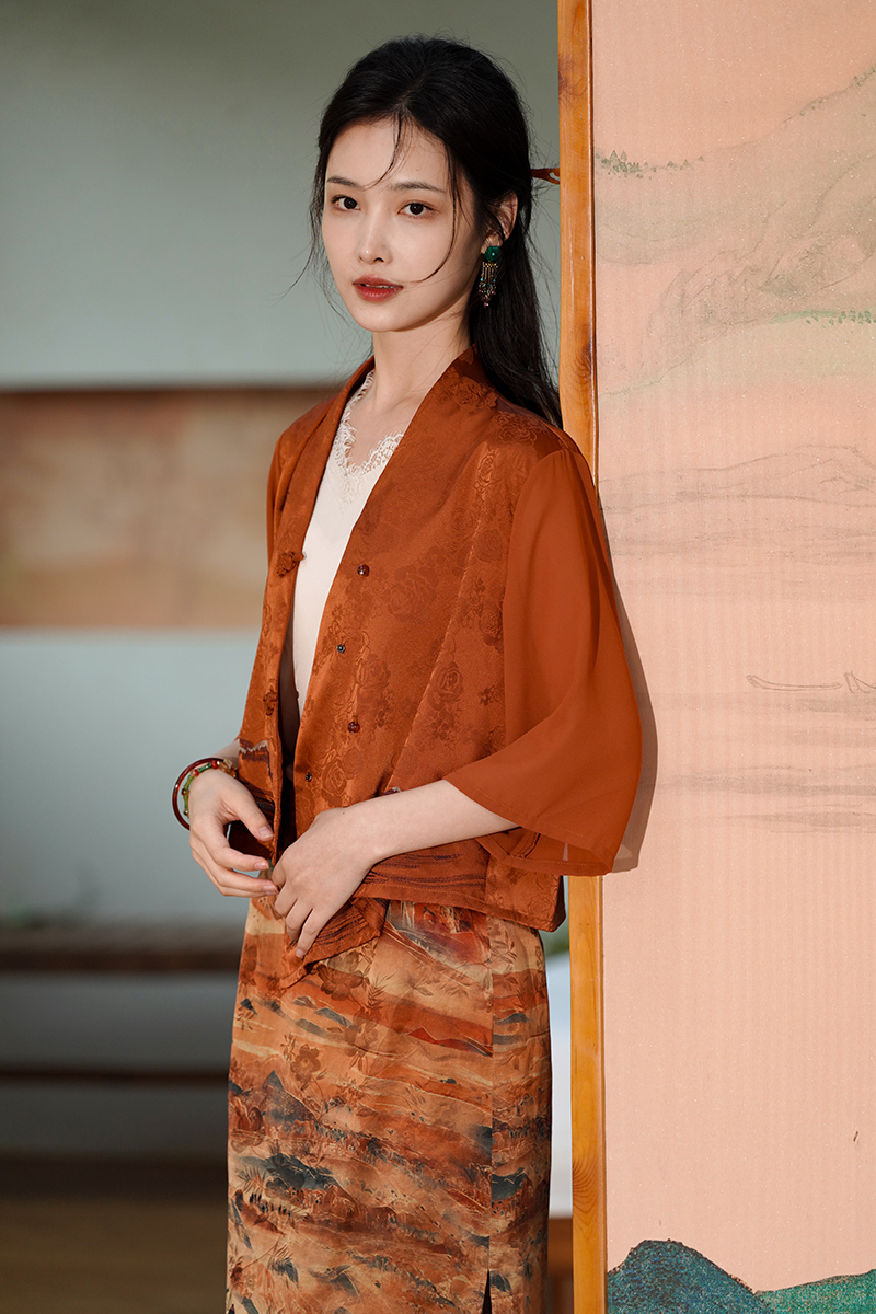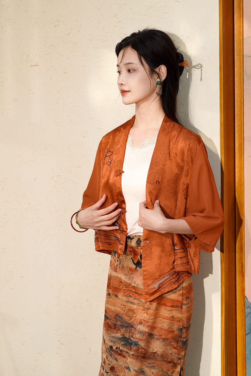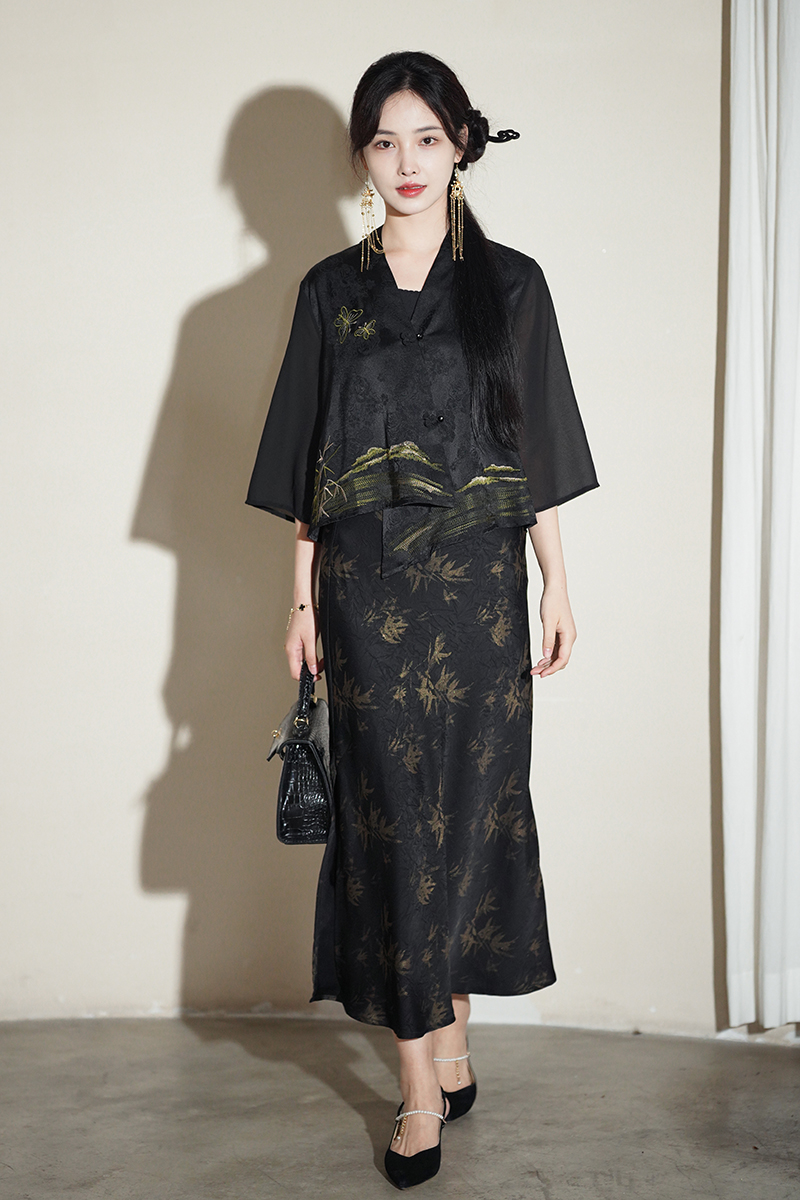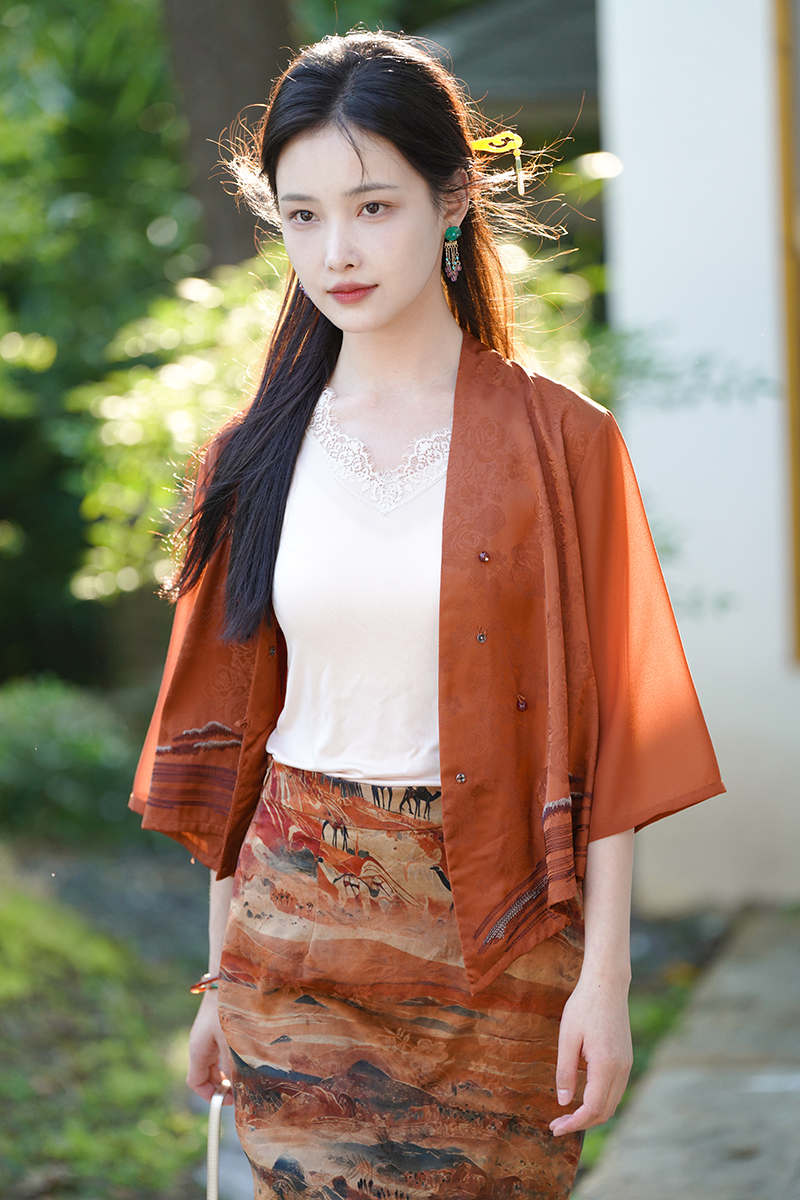 半裙推荐:模特搭配的是#25姆米暗纹提花香云纱筒裙『丝绸之路』
