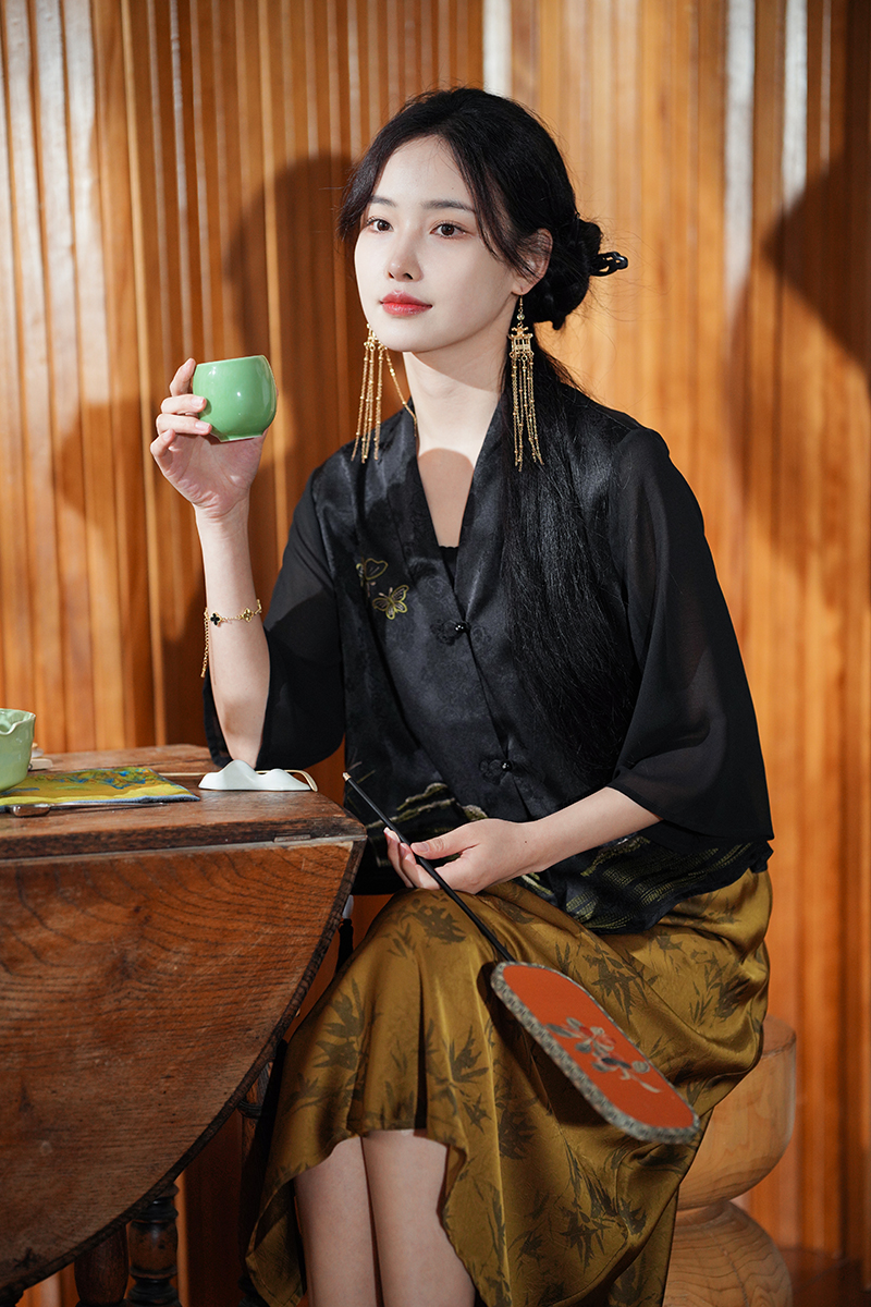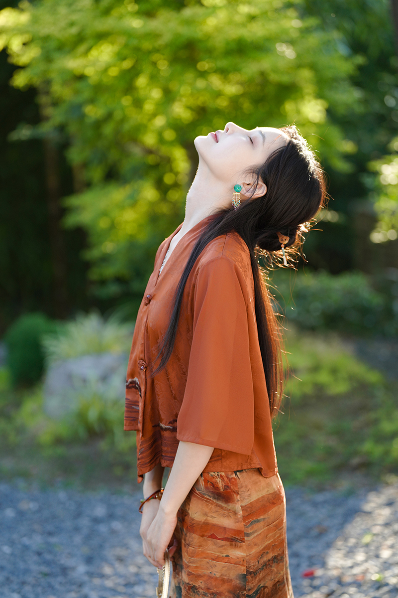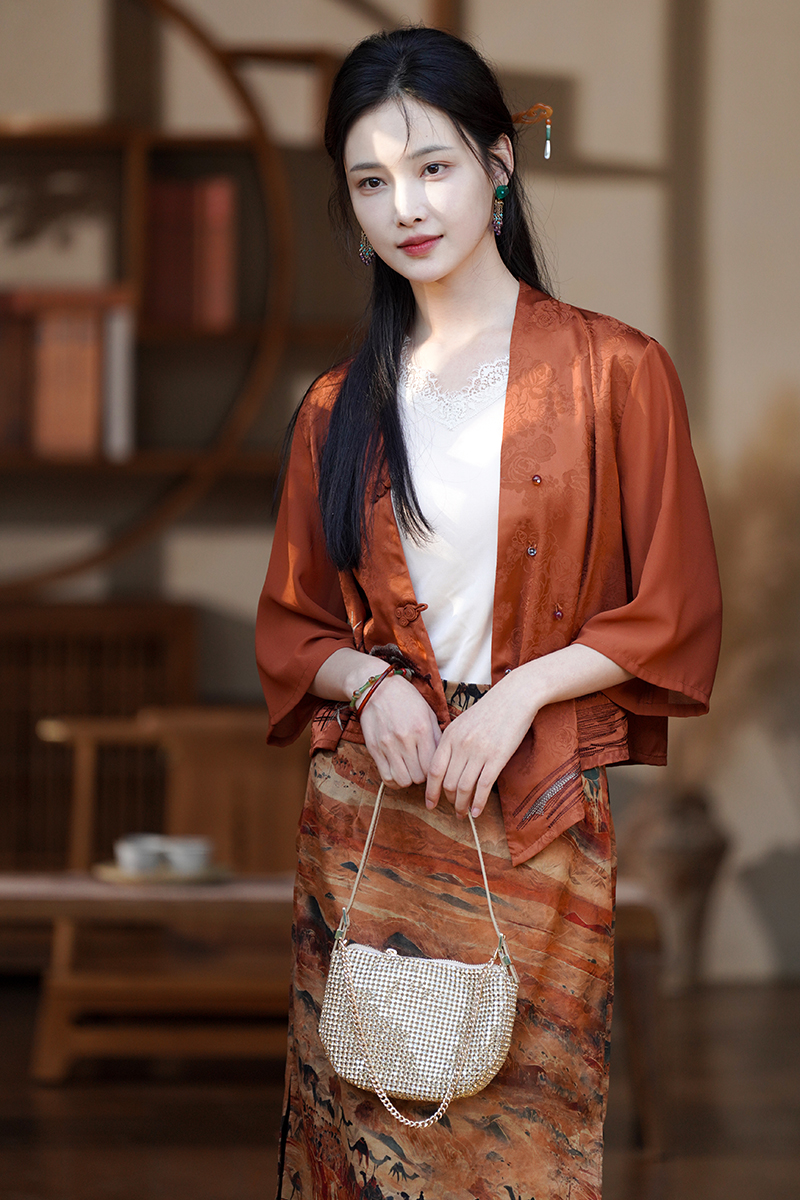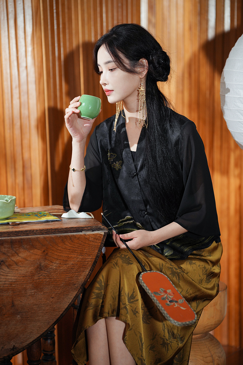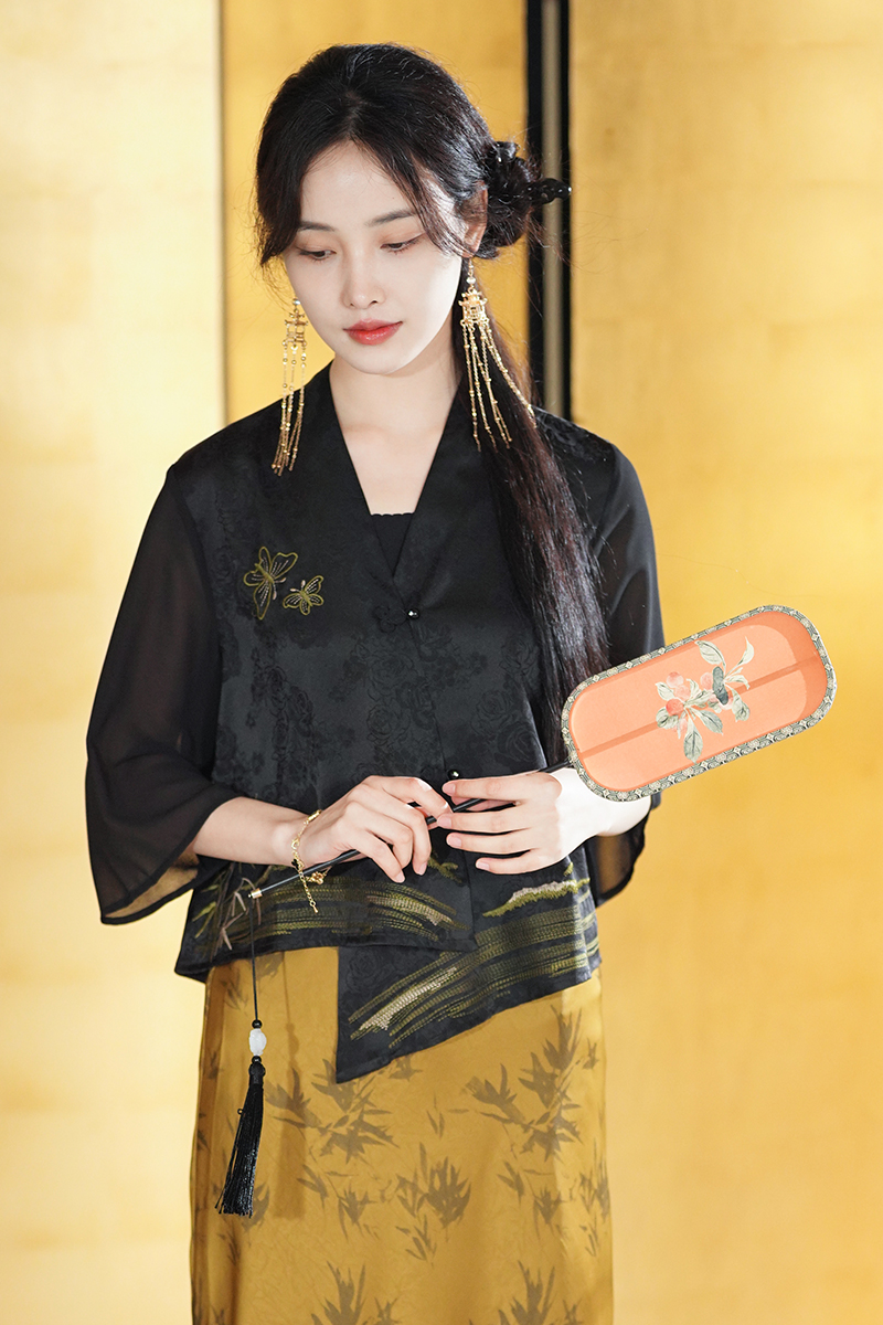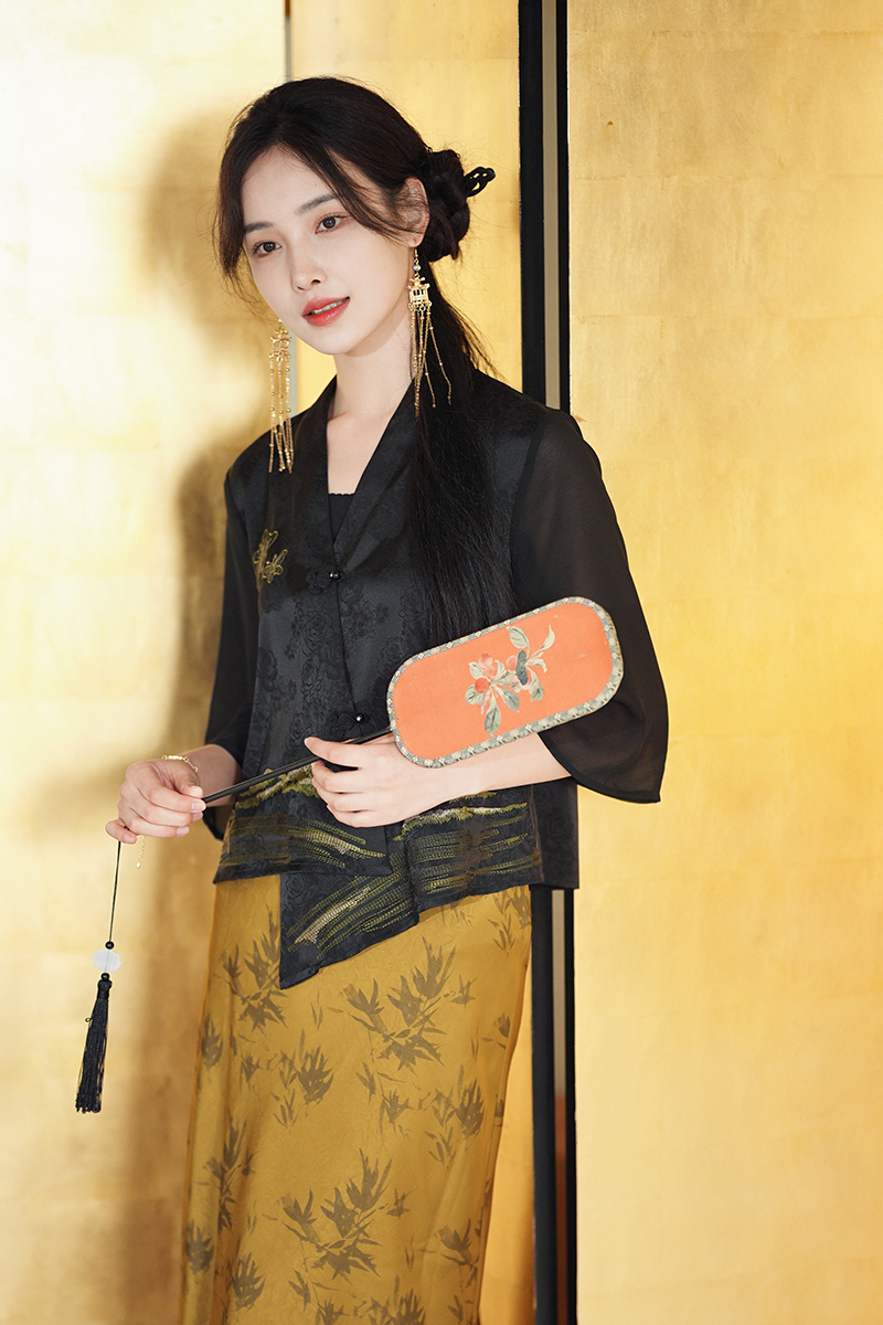 半裙推荐:模特搭配的是#25姆米暗纹提花香云纱筒裙『丝绸之路』
