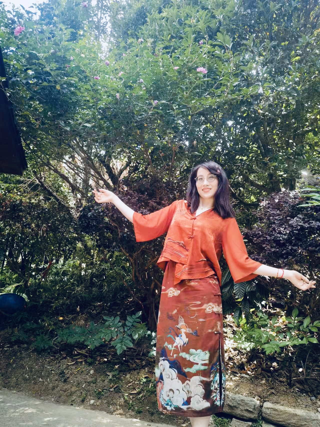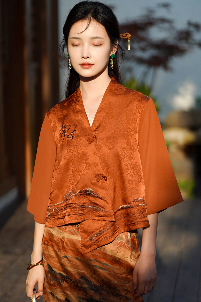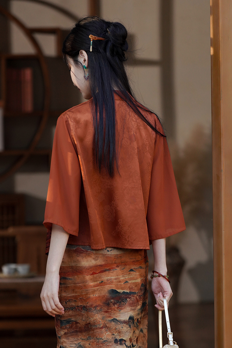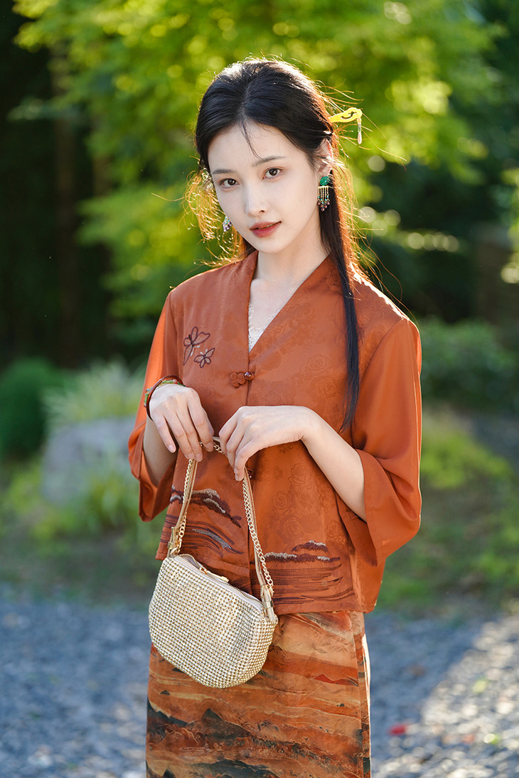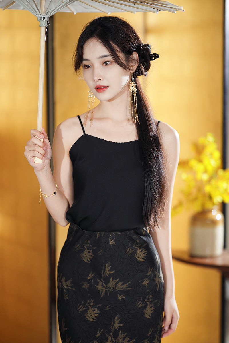 半裙推荐:模特搭配的是#25姆米暗纹提花香云纱筒裙『丝绸之路』