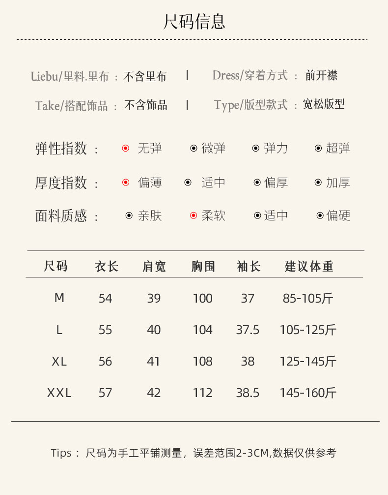 精致的版型,整体感觉复古而文气,垂坠的面料,低调奢美,华贵提气质,质感醇厚,与生俱来的高贵优雅,宽松的版型有包容感,舒适显瘦。