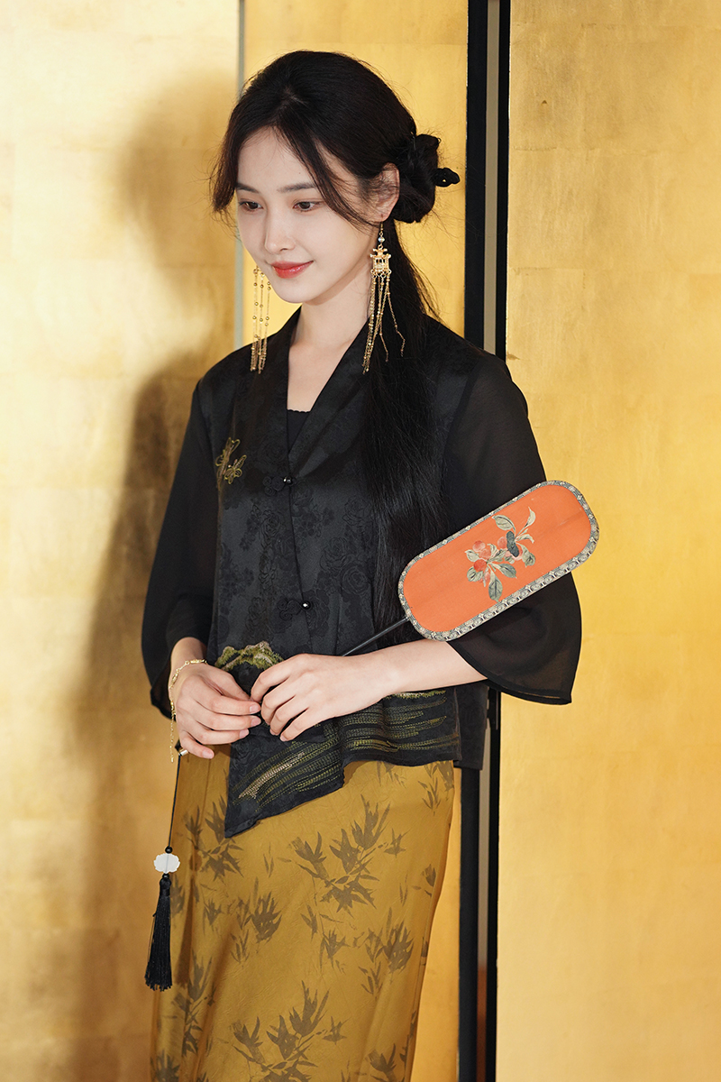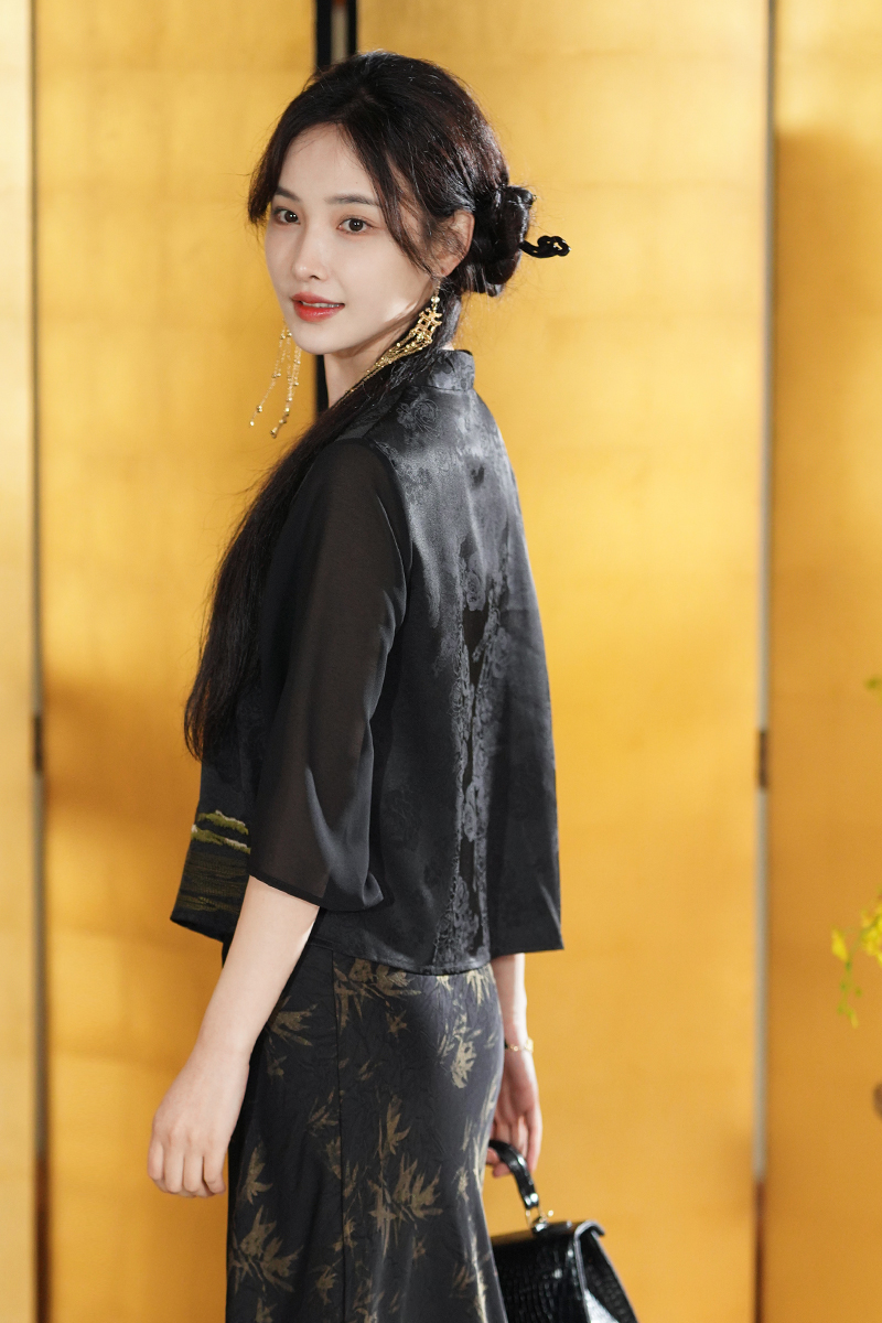 3.国风外搭+裤子。端庄大气,尽显高雅矜贵 。