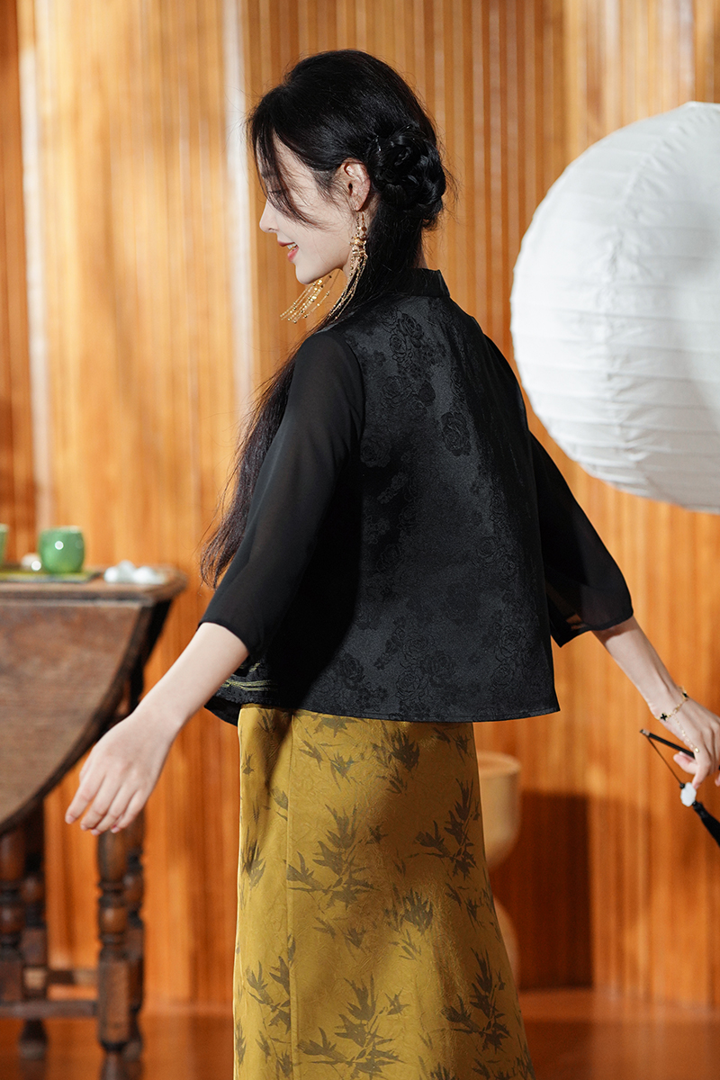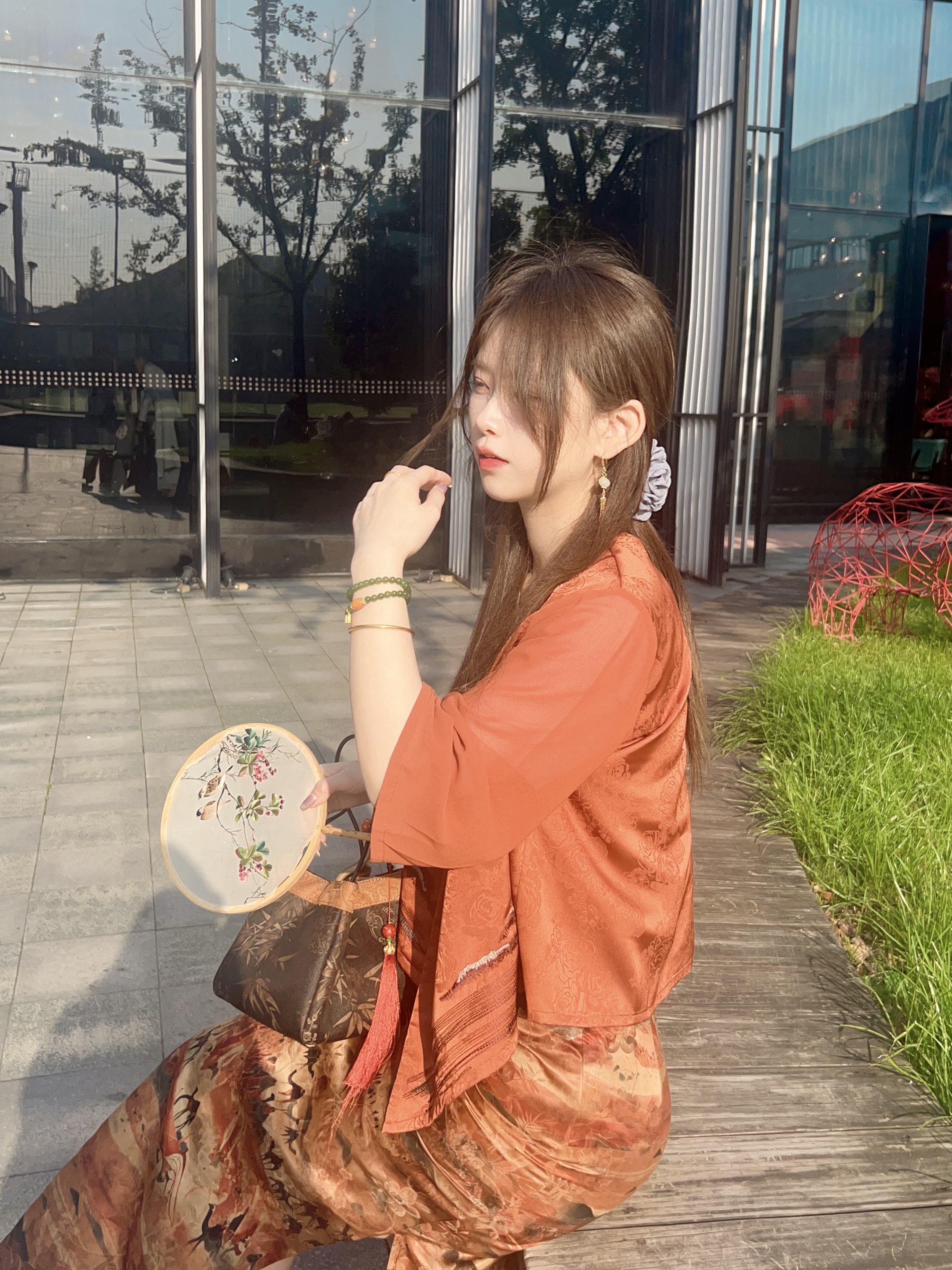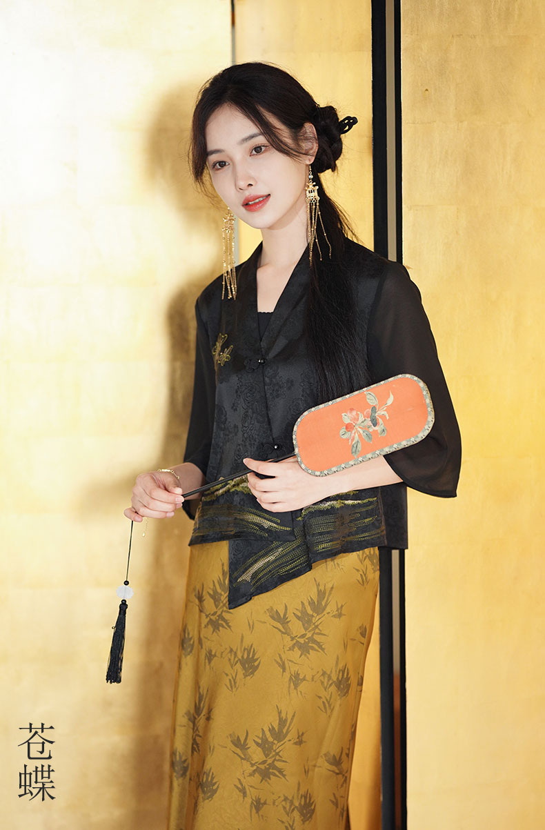 2.国风外搭+衬衫+半身裙。复古又文艺,整体温柔清冷气质 ,宛如画中仙子。