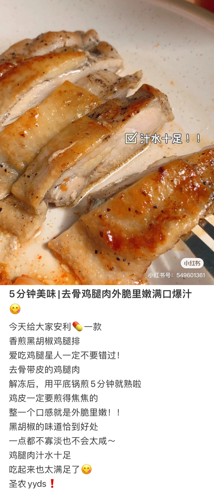 圣农的香煎鸡胸肉和无骨鸡腿肉组合,都是用了自家白羽鸡,涂好秘制酱料后,通过40分钟的真空滚揉再静置入味,使得每一缕肉丝都不会寡淡,只要放入空气炸锅15分钟或者上锅无油煎几分钟,口口爆汁的鸡肉肉就可以上桌啦!有热辣、黑椒、藤椒几种口味可选,换着吃保证不会腻,日常配上杂粮和蔬菜,就是健康一餐!