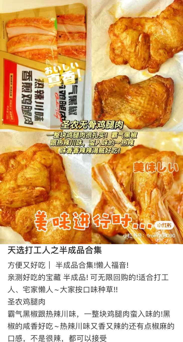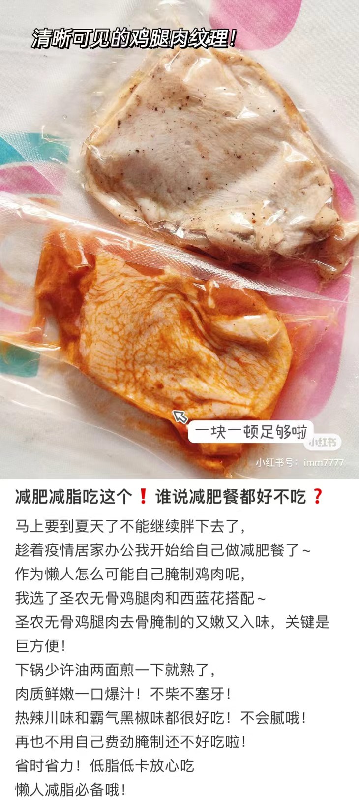 一个热知识,光吃鸡肉是不会的胖哦,是减脂期的优质蛋白,可以去掉鸡皮,只吃白肉,这一鸡胸肉+鸡腿肉组合就很友好,而且一组16包,才109元,每包不到7块钱,还要啥自行车!