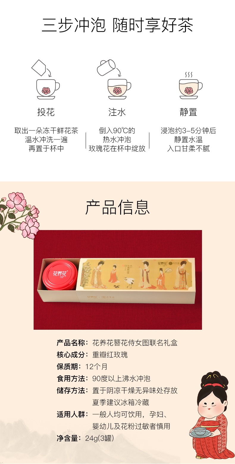 花养花 x 荣宝斋联名冻干玫瑰鲜花茶礼盒 3罐*24g