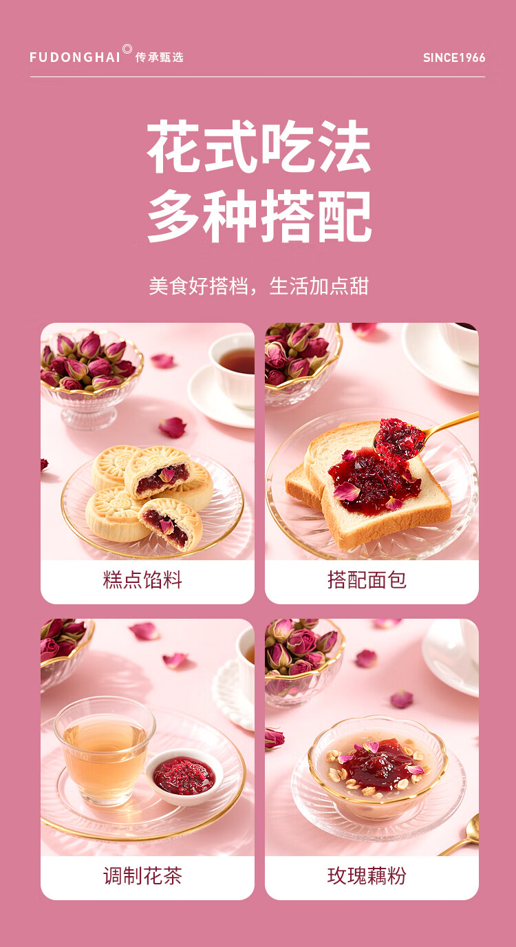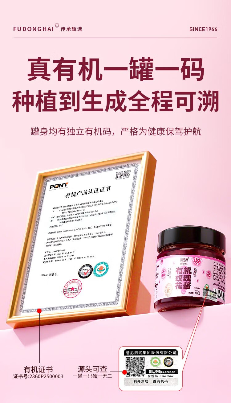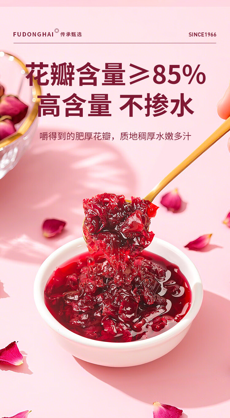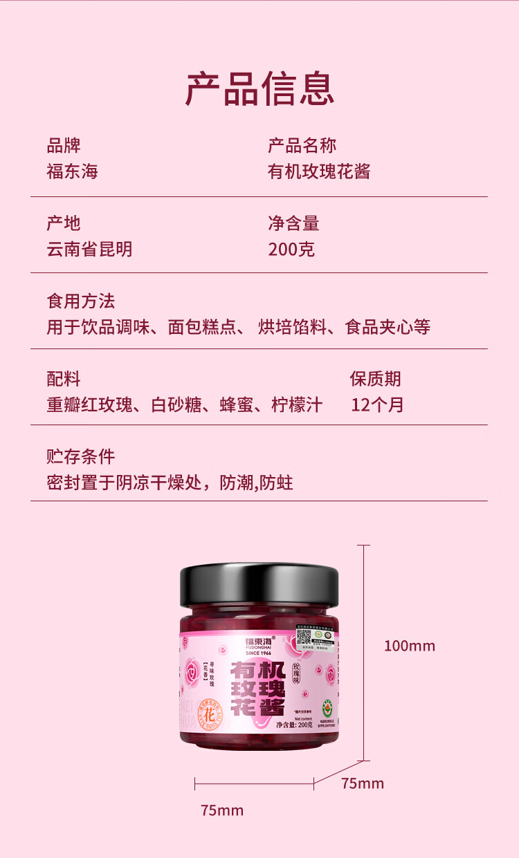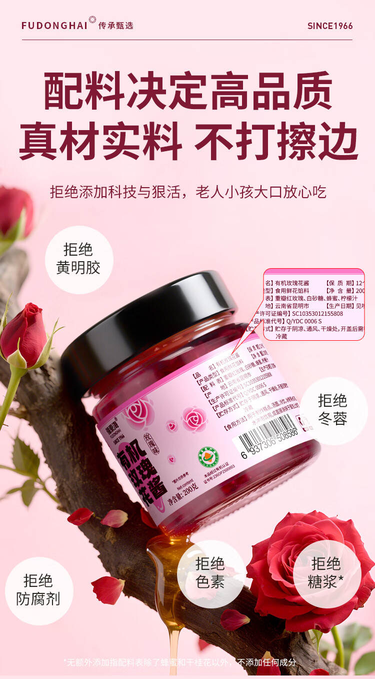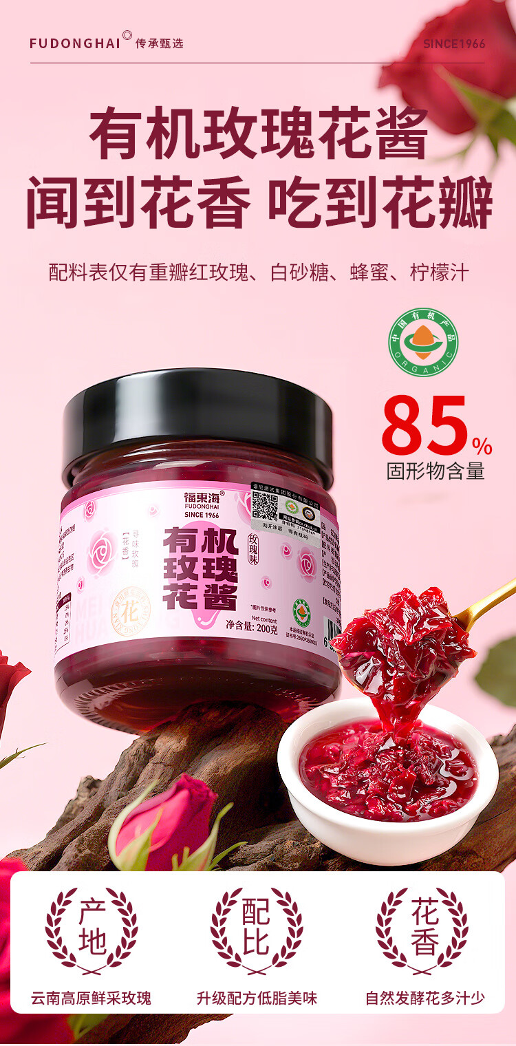 福东海 有机玫瑰花酱200克 云南食用玫瑰花酱鲜花酱泡茶烘焙
