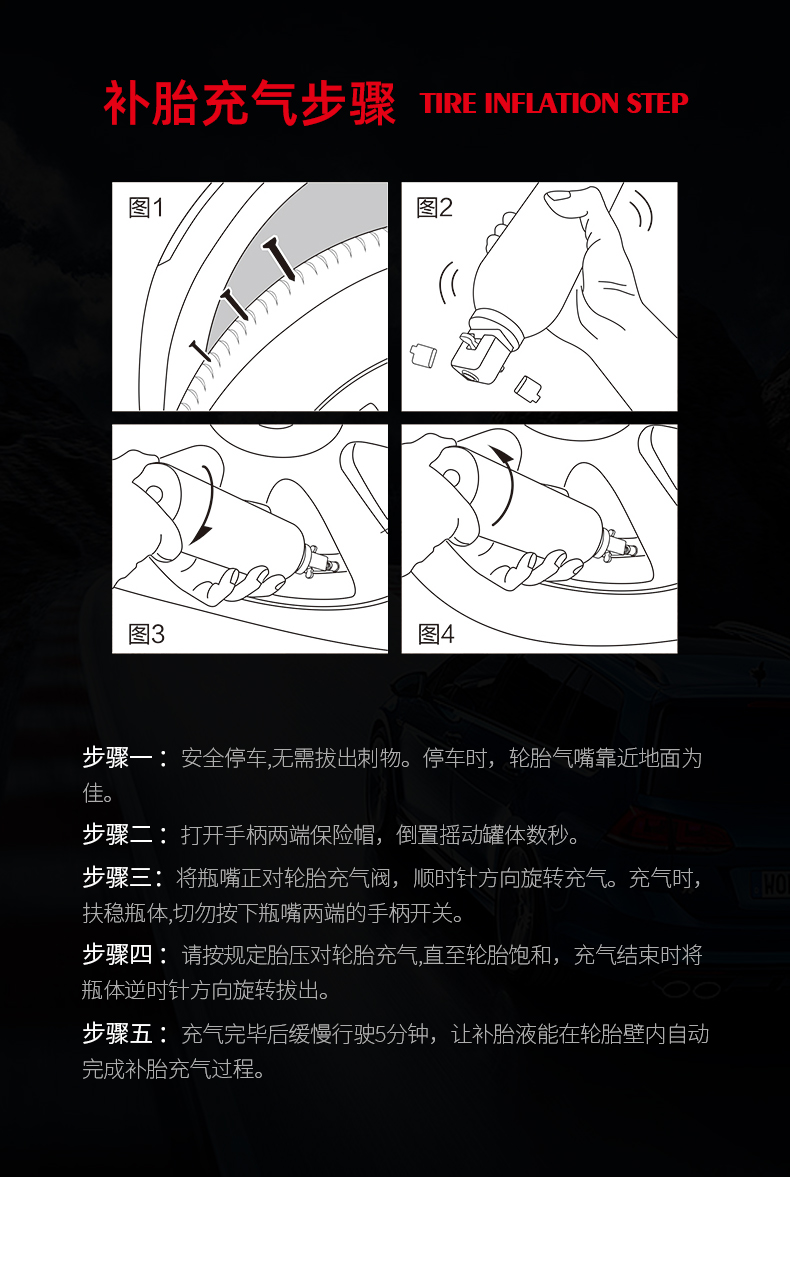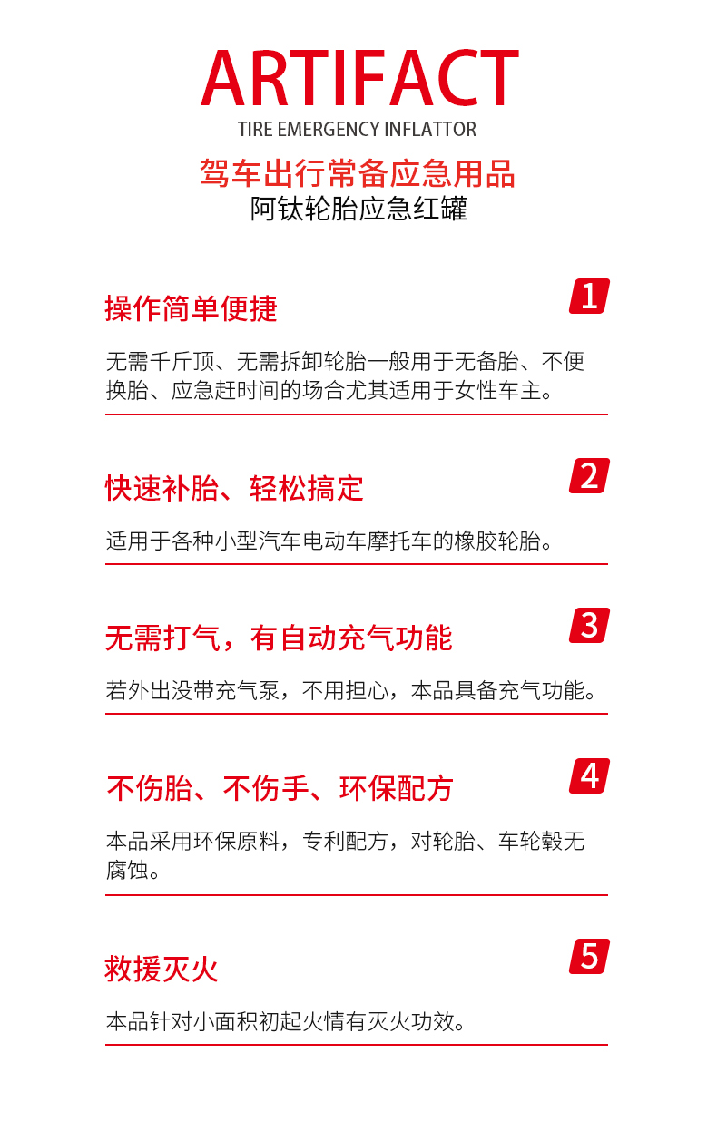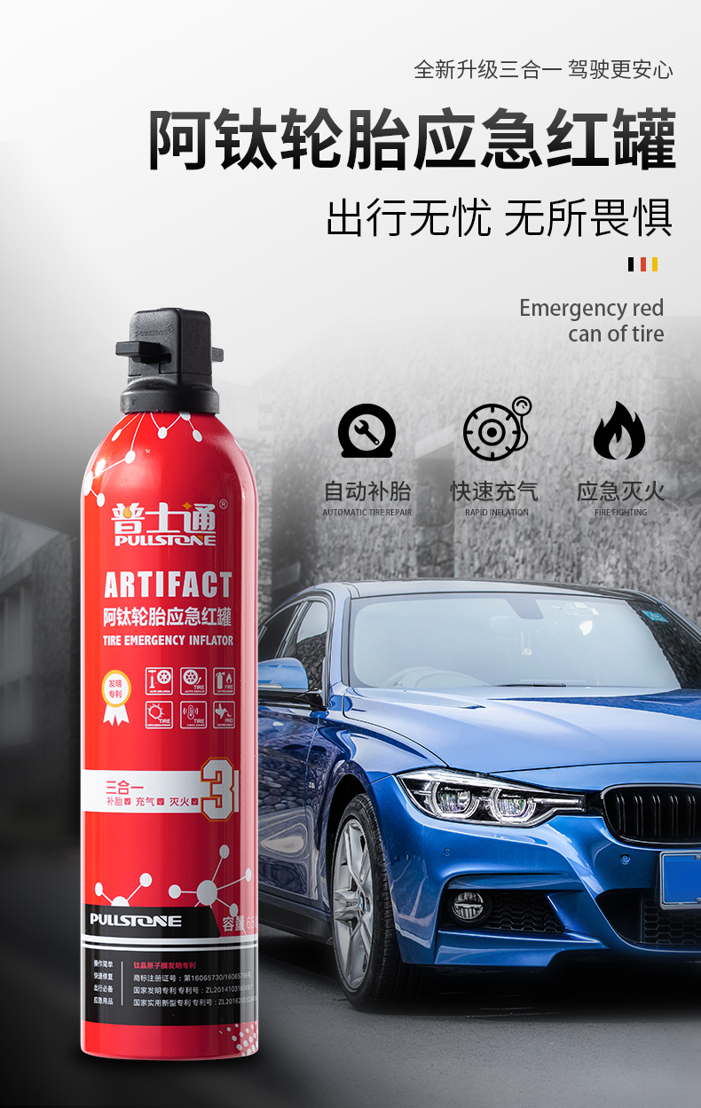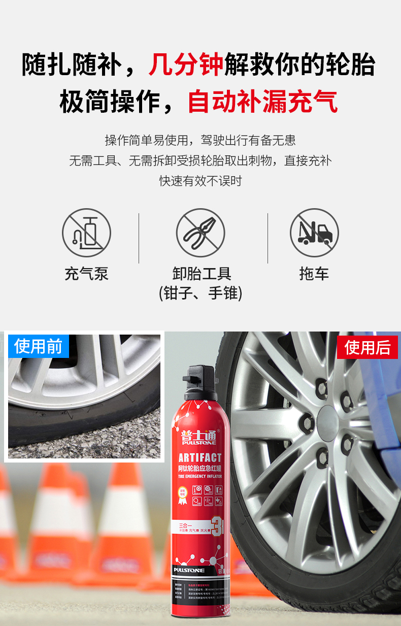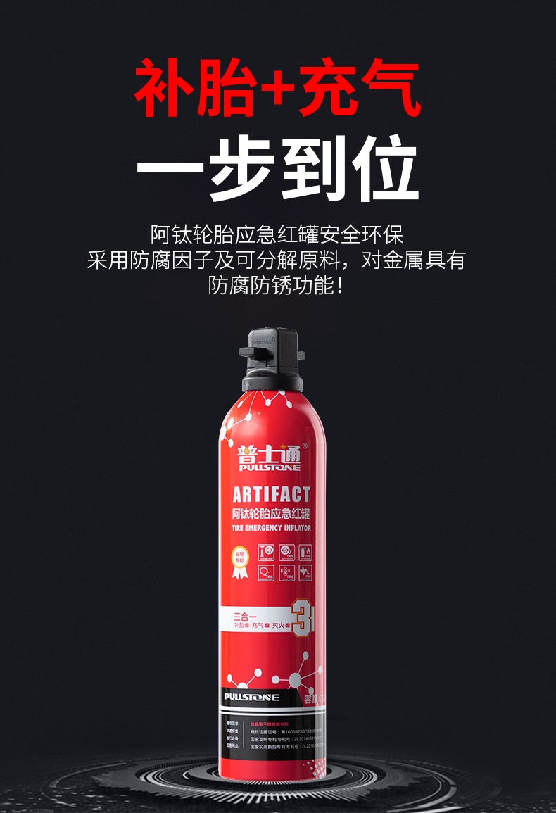 多功能应急补胎液650ML 摩托车汽车轮胎自补元气罐补胎液电动车自动充气补胎