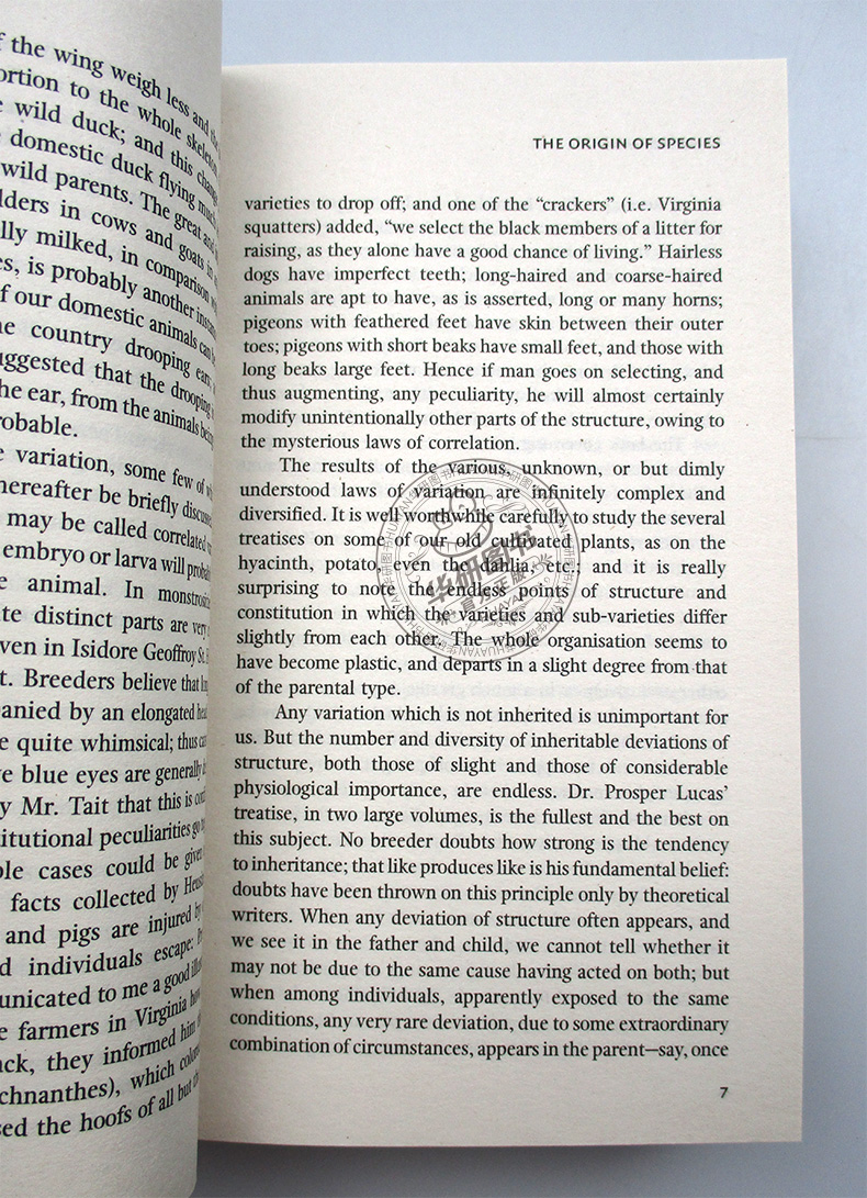 The Origin of Species《物种起源》是达尔文论述生物进化的重要著作。该书大概是19世纪具有争议的著作,其中的观点大多数为当今的科学界普遍接受。早在达尔文之前,就已经有人提出过进化的观点。但是真正使生物进化论为世人所关注的是达尔文于1859年出版的《物种起源》,因为这本书的结论建立在大量的一手考查资料基础之上。它不仅带来了生物科学的根本变革,而且使人们的世界观发生了重大的改变。达尔文是在“贝格尔号”舰上担任博物学家时进行的五年航海考查时期,通过考查和对比各地的物种性状,得到了物种渐变的结论。航海结束后,达尔文又通过搜集动物和植物在家养条件下发生变异的材料,根据人工选择的原理得到了自然选择的思想。遗传变异、生存斗争、自然选择学说是《物种起源》一书的主要内容。