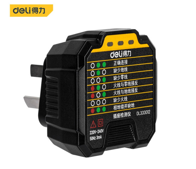 得力插座检测仪带电压显示10A(黄)