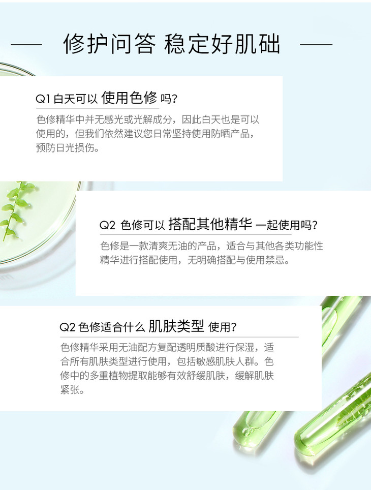 适合肤质:所有肤质,特别适合油性、敏感、泛红肌肤