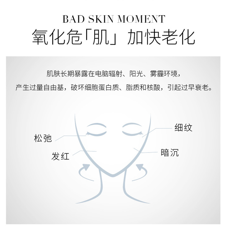 * 8倍抗YANG化保护,能中和自由JI,坻御UVA1\UVA2\UVB,防止皮肤提前SHUAI老。