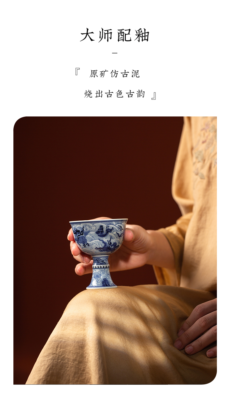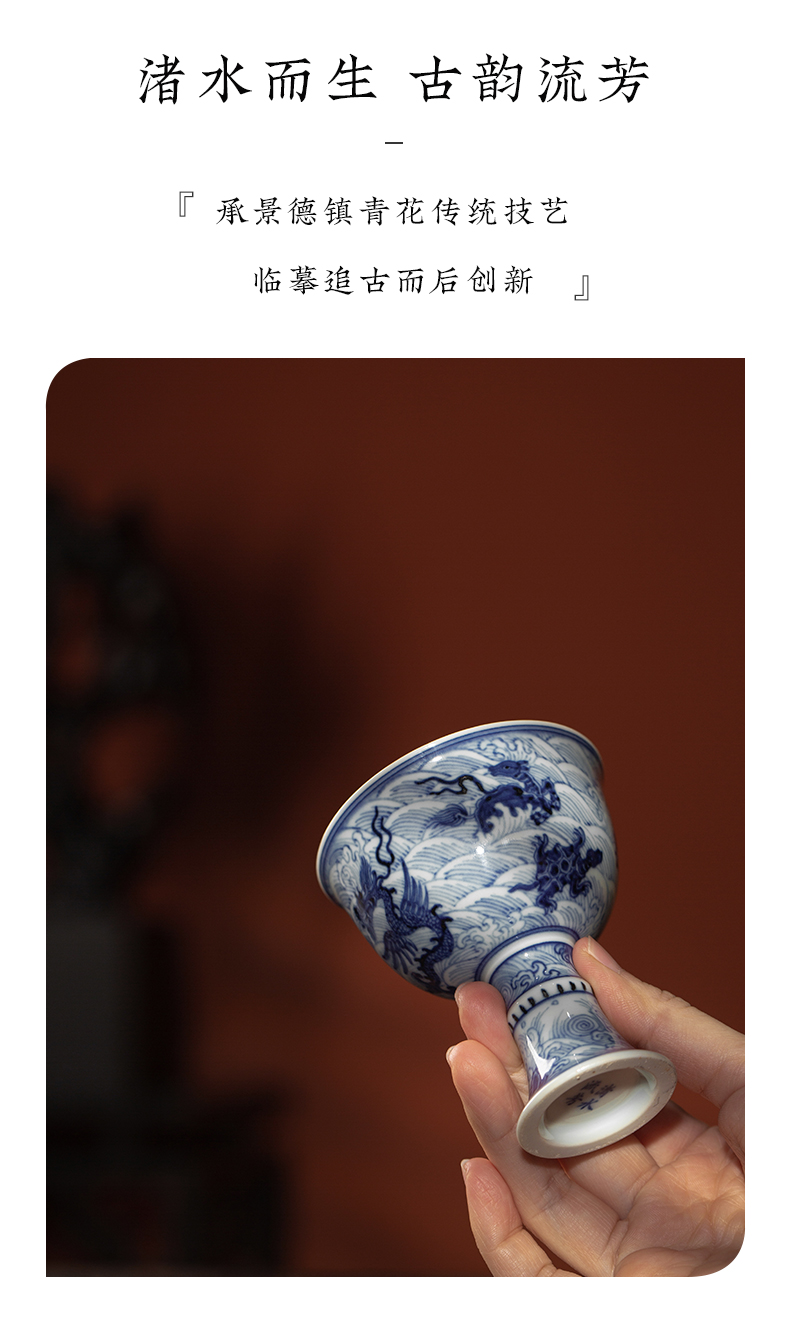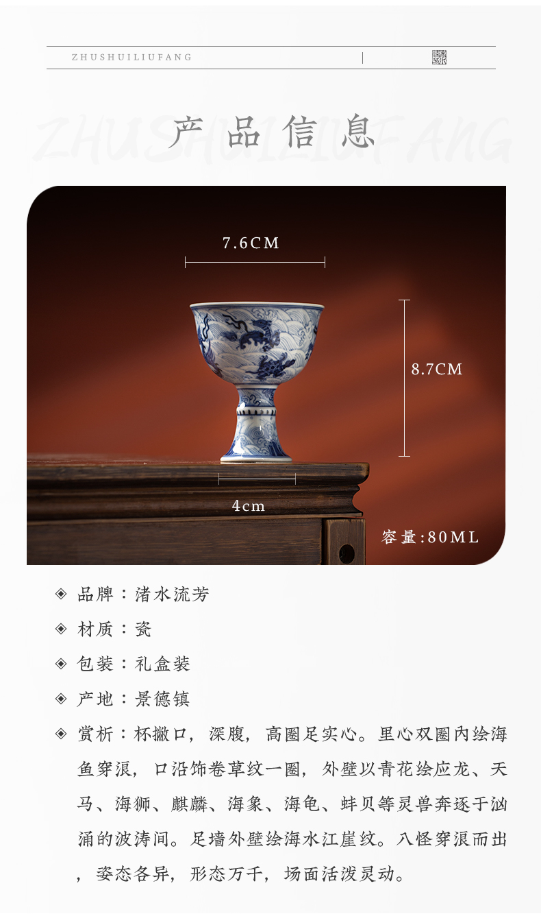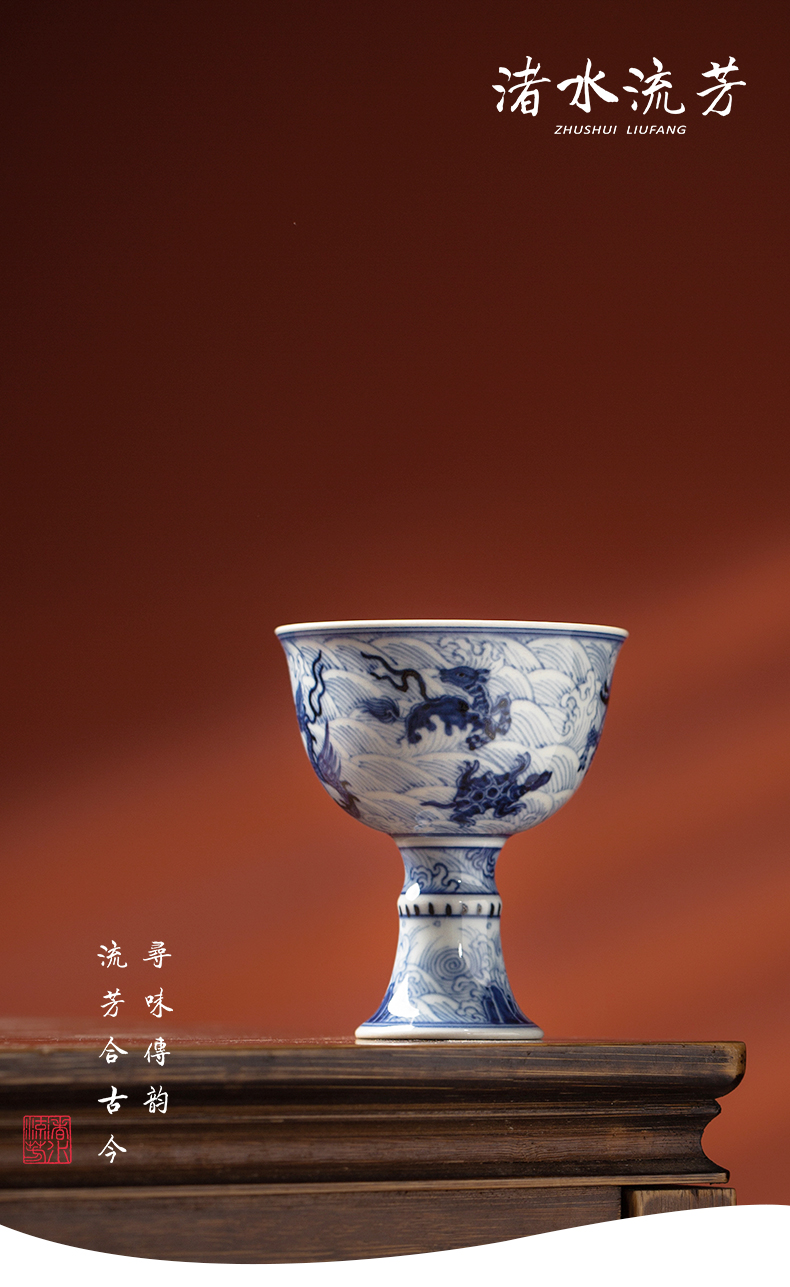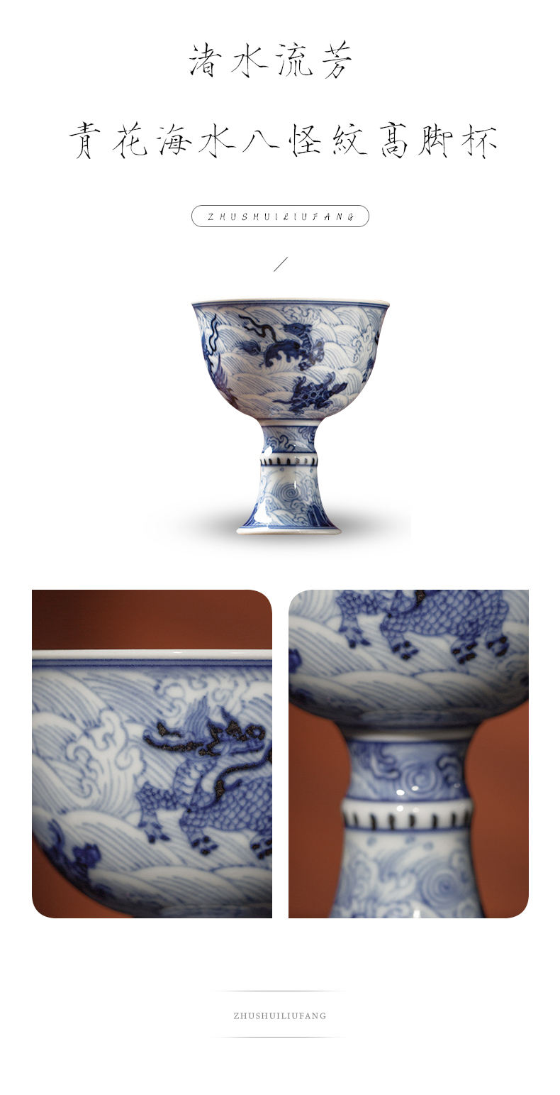 渚水流芳青花海水八怪纹高脚杯(缺货)