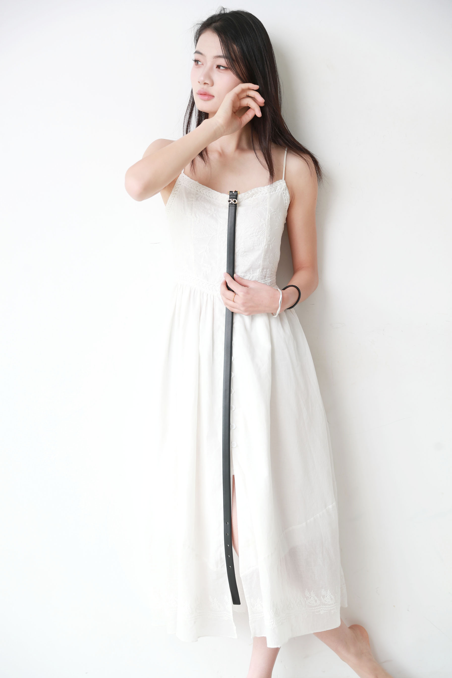 天然牛皮腰带,出口意大利。法式复古风金属五金固定皮带C112488