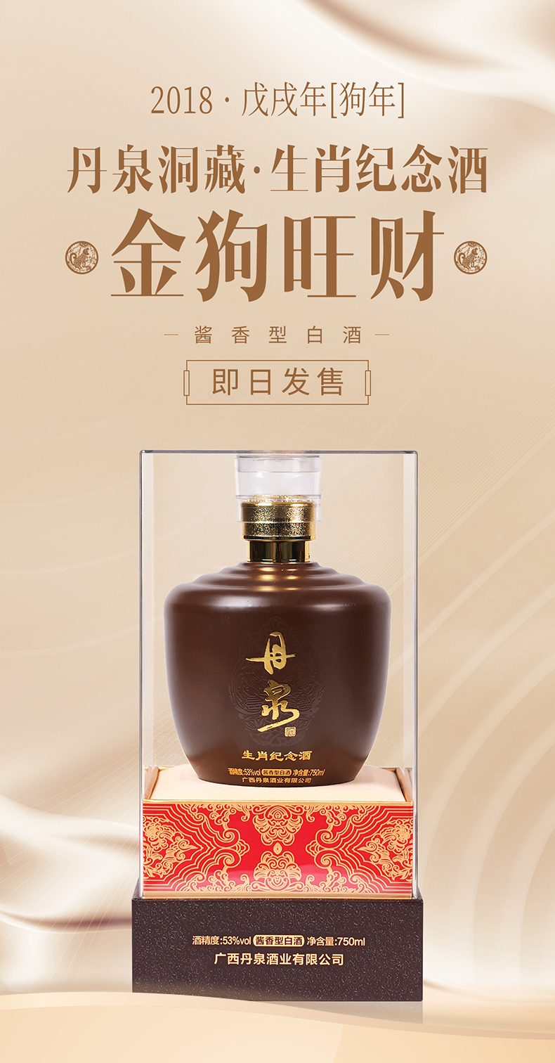 【2018年灌装】广西丹泉酒 狗年年生肖纪念酒 53度酱香型白酒750ml礼盒