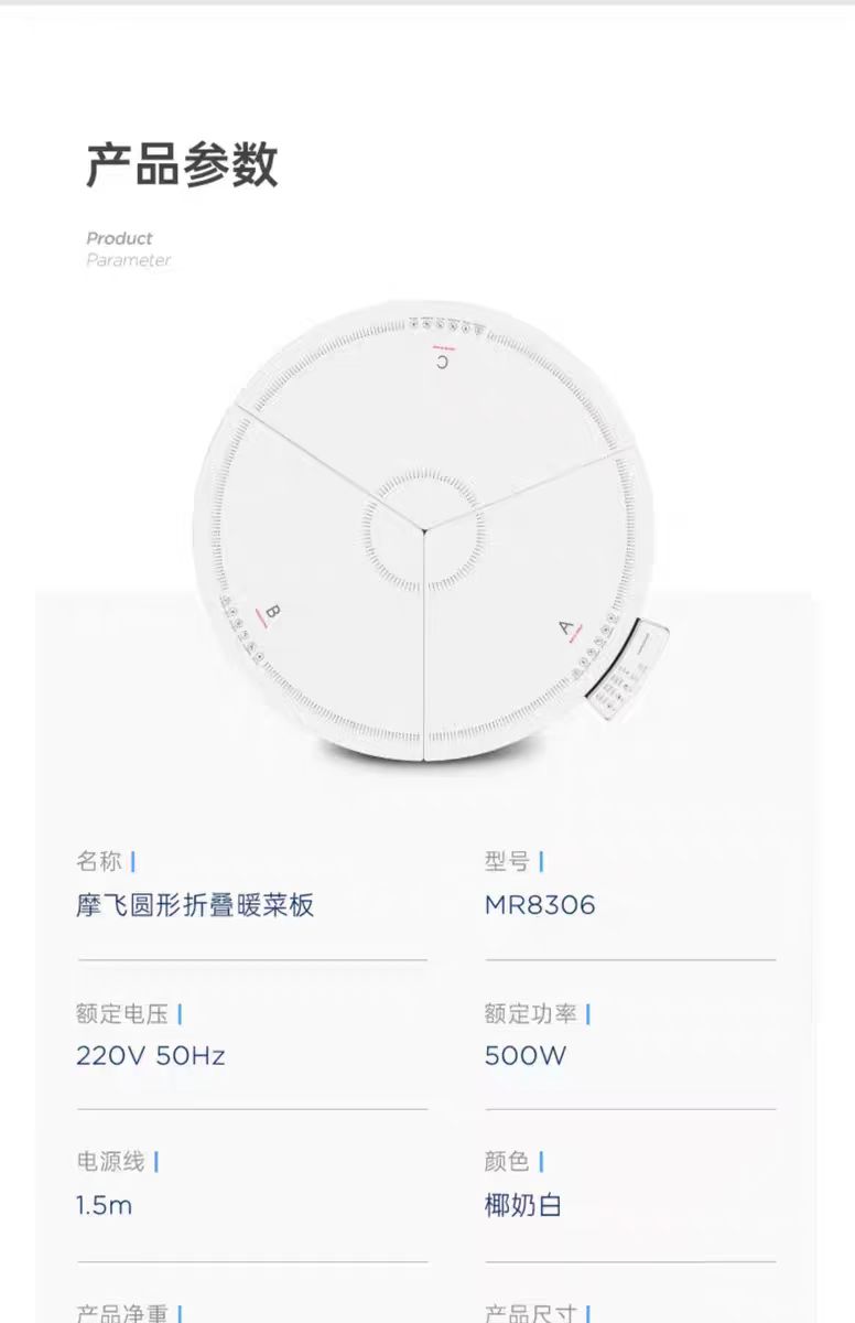 【春上新】10楼 摩飞 暖菜板MR8306 吊牌价759元 活动价499元