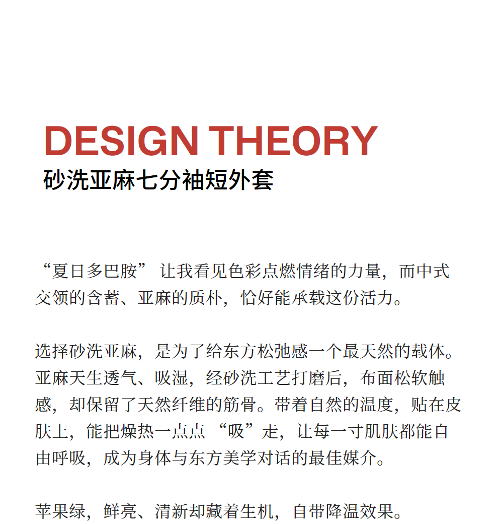 以天然亚麻为载体,融合热烈色彩与自在剪裁为身在城市、心怀远方的女性提供兼具美学与舒适的旅行着装