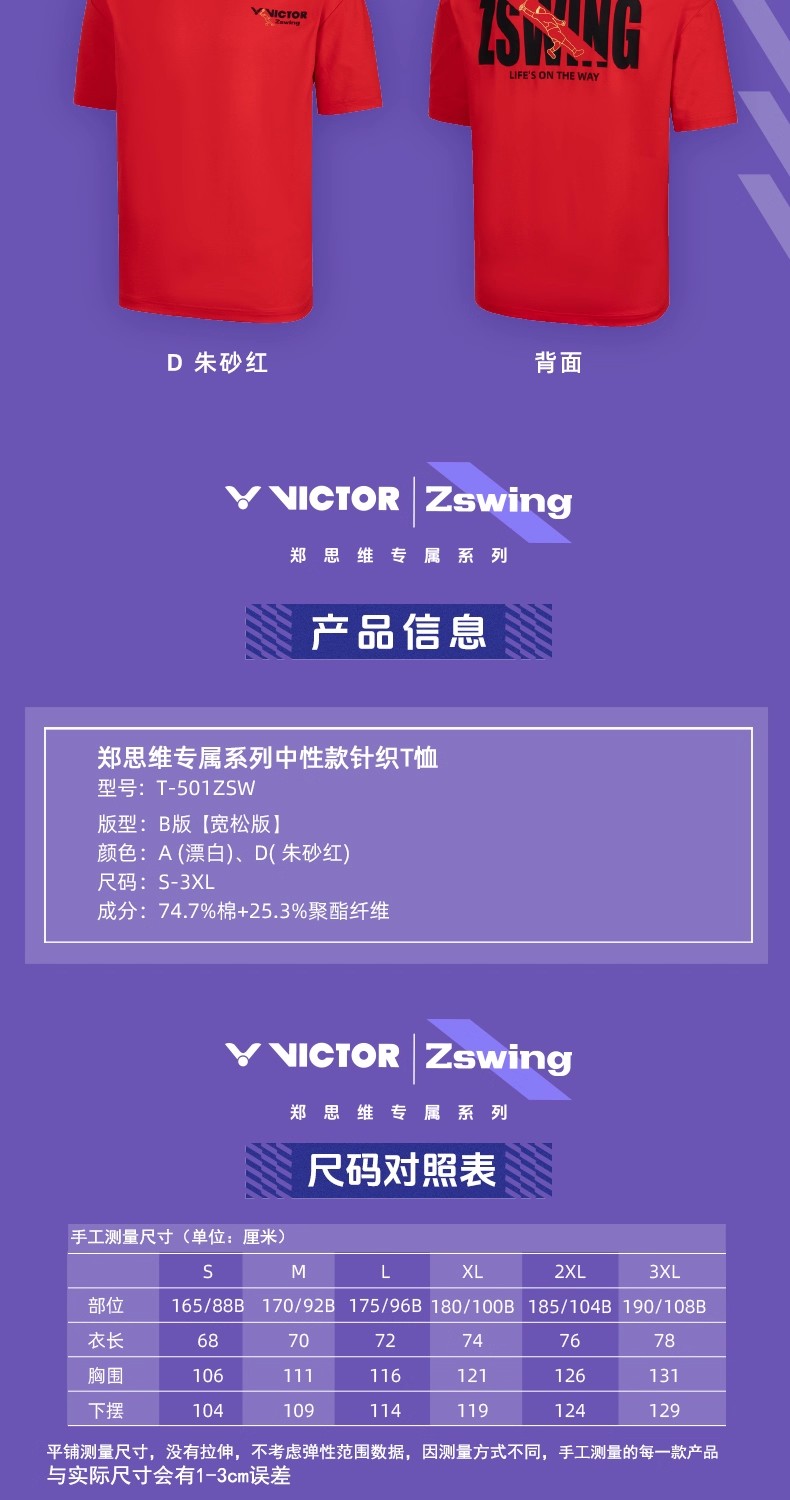 VICTOR威克多郑思维专属系列羽毛球服T-501ZSW透气速干男女款运动短袖