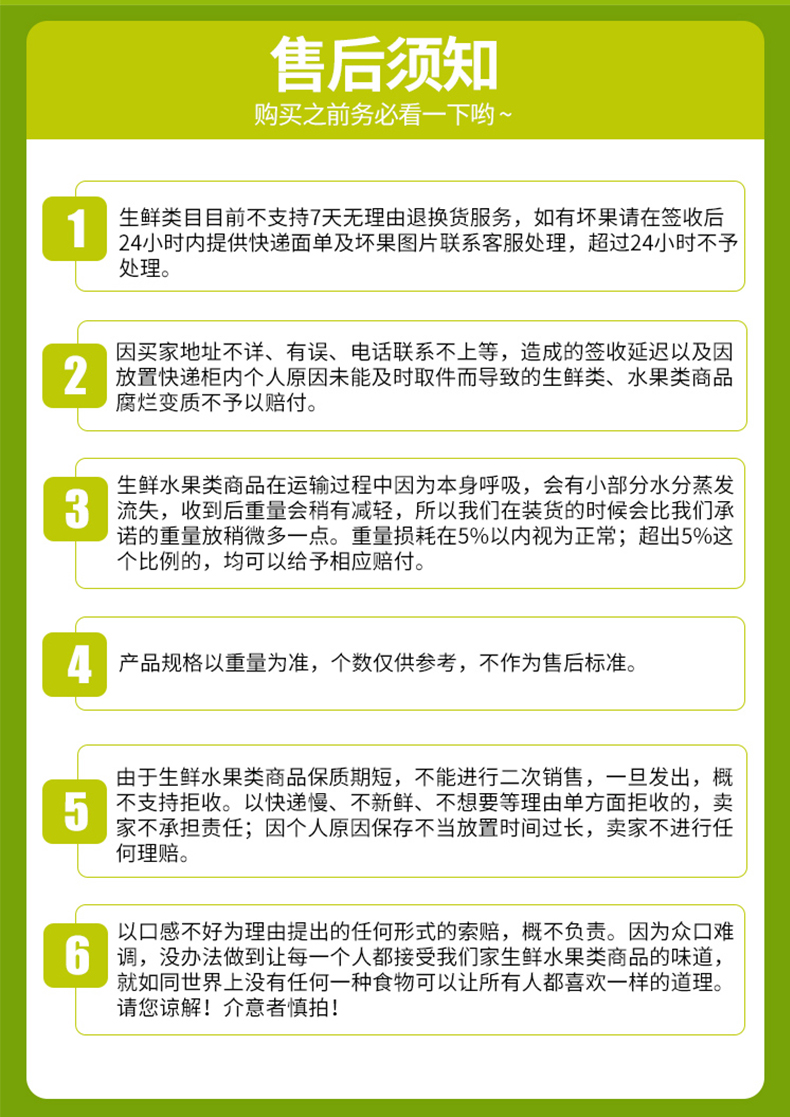 1、猕猴桃发货为7-8分熟的果子,若收到猕猴未熟透,请将猕猴桃催熟后再食用,口感风味更佳!