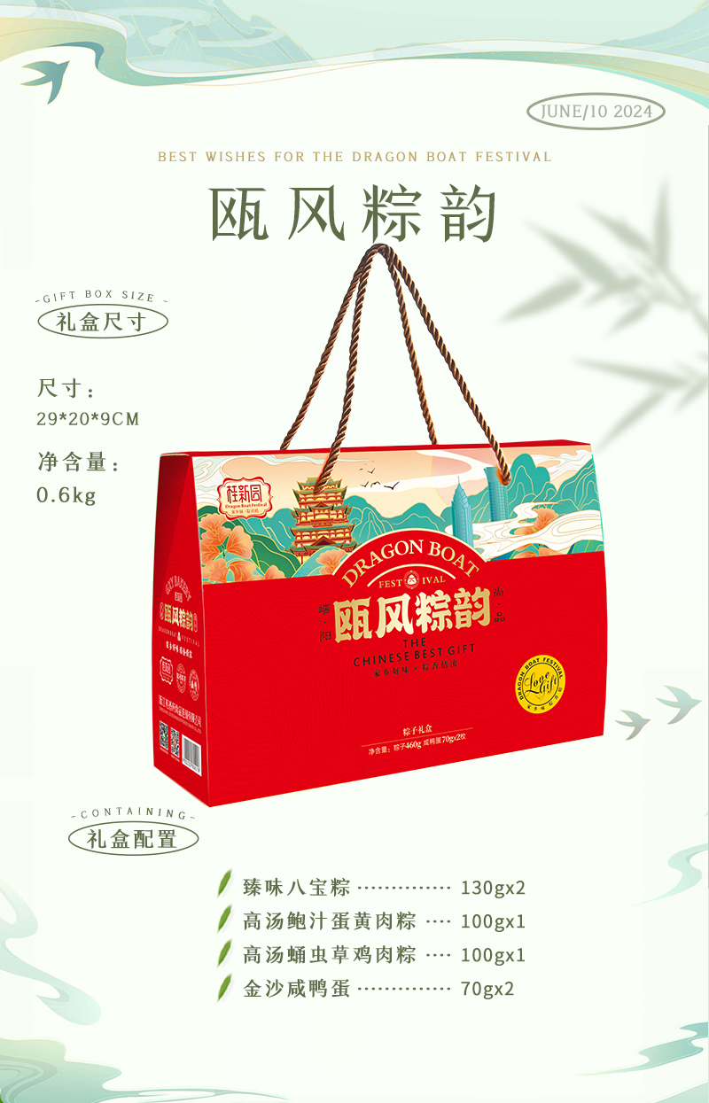 臻锦粽【门市价139元】10粽5味+6枚咸鸭蛋——桂新园端午家乡粽系列