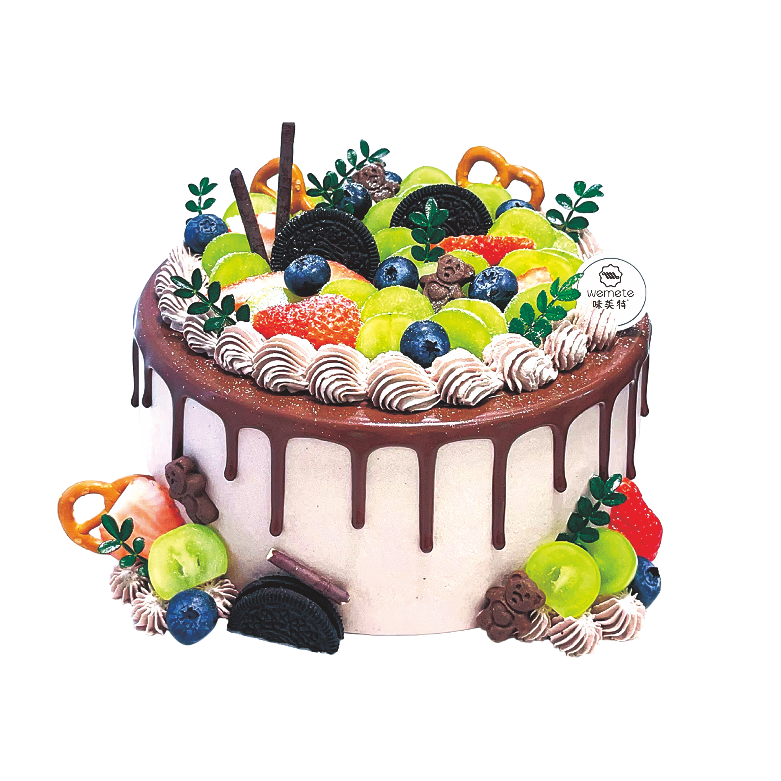 味美特“巧恋心语”应季水果装饰蛋糕,蛋糕周边淋的是巧克力酱,原味戚风胚-应季水果装饰,可能水果与图片上的水果有些许不同-如需6英寸,请添加客服微信咨询
