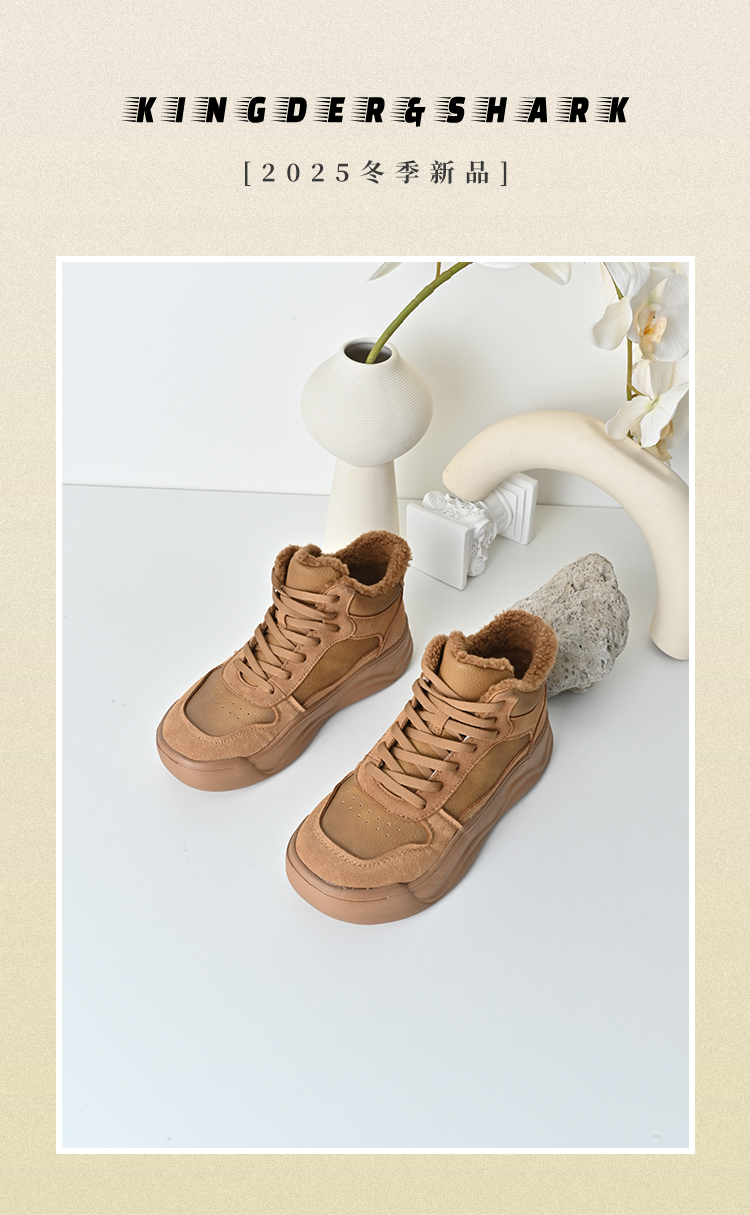 经典鲨2025冬季专柜新品加绒系带厚底轻便休闲鞋御寒棉鞋女KW395-558031