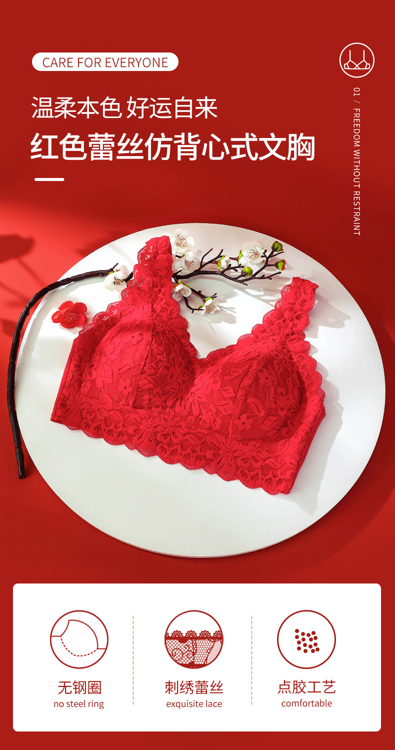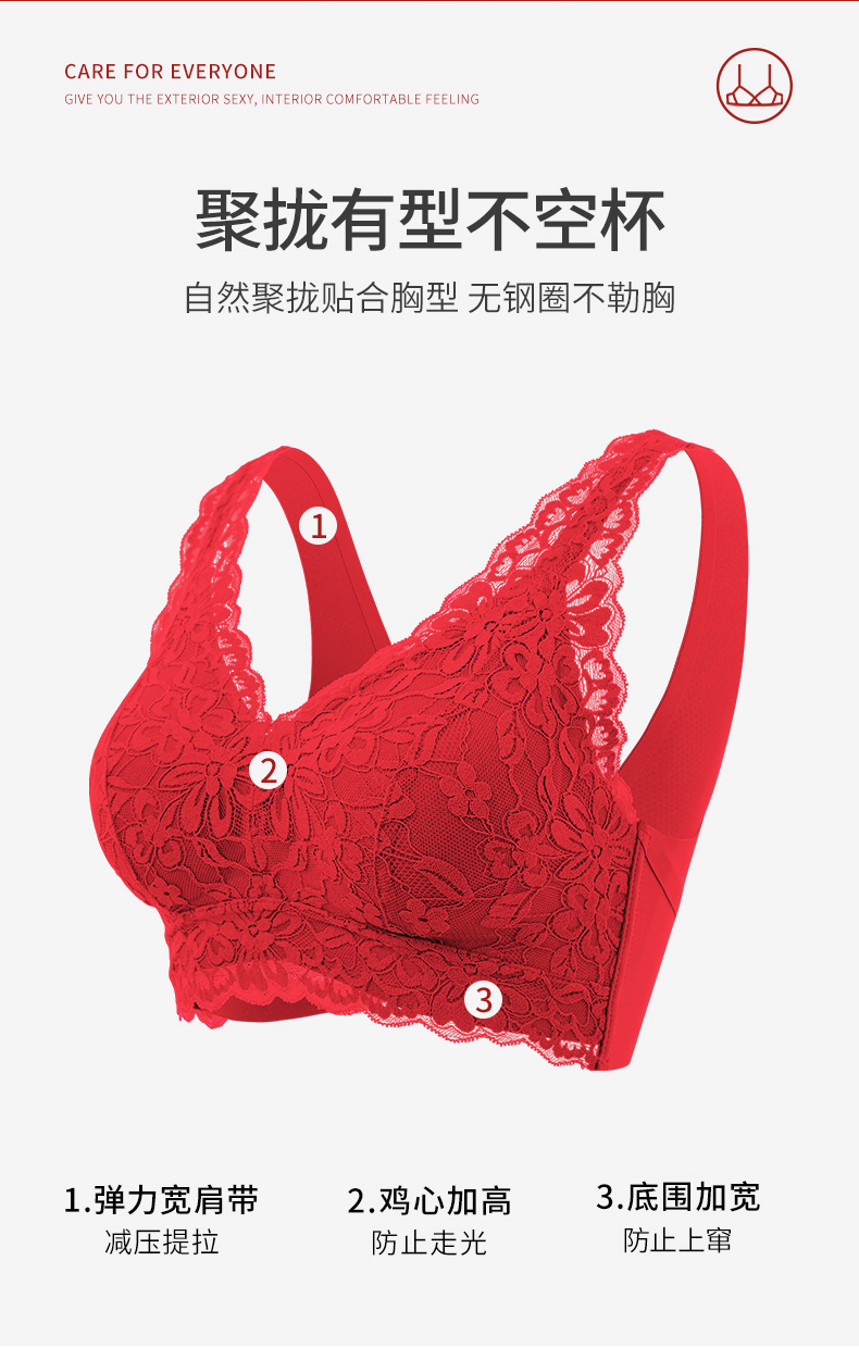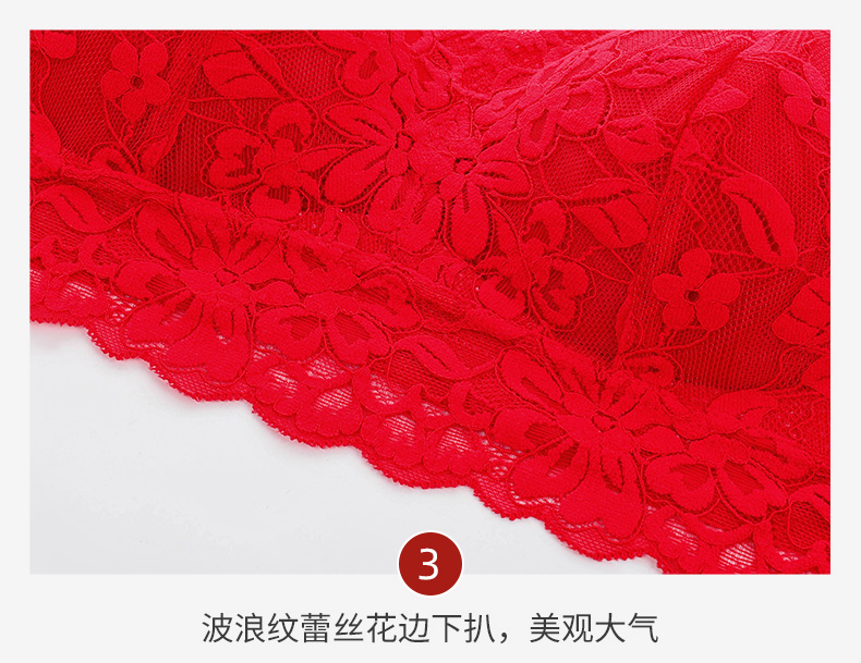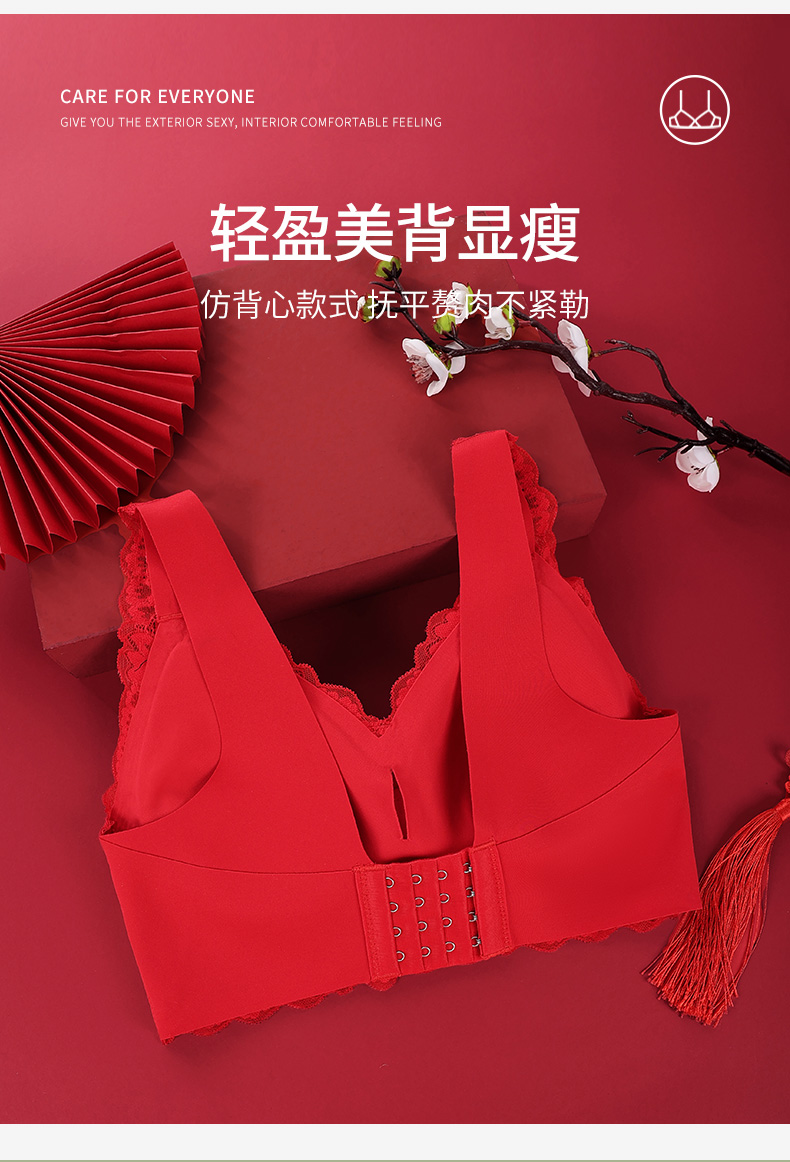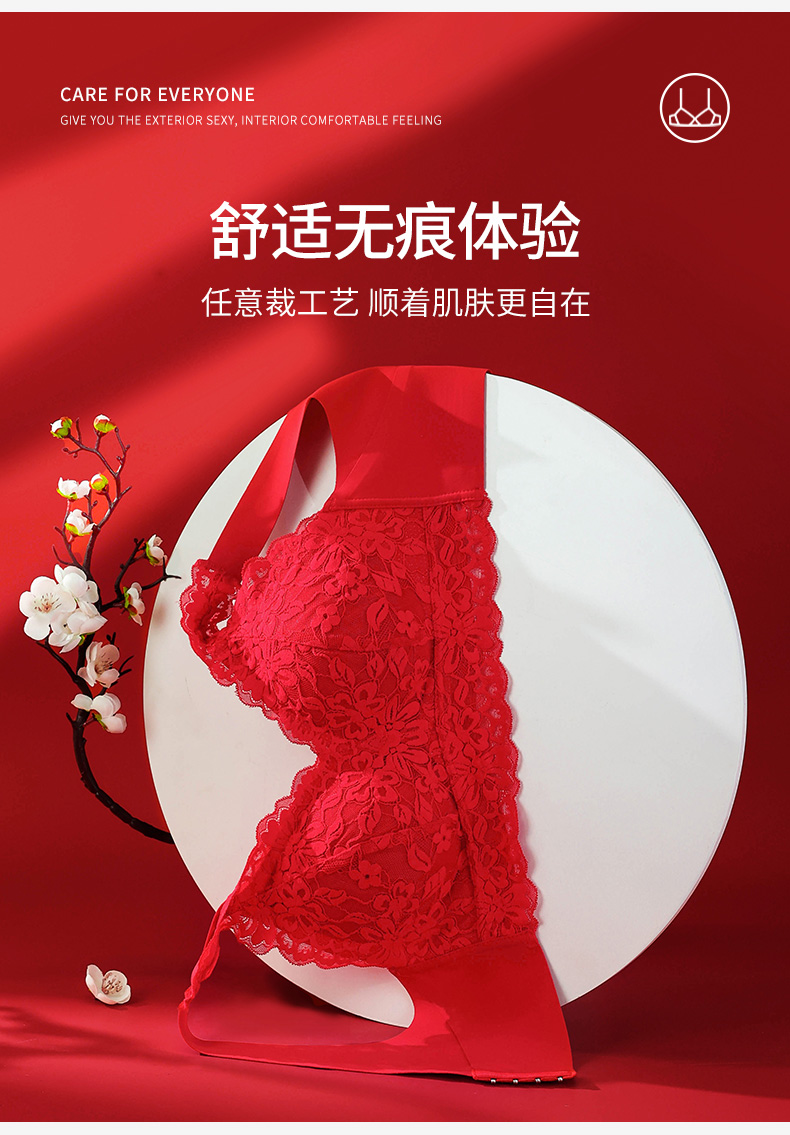 雅黛丽无痕内衣女小胸聚拢性感蕾丝文胸无钢圈薄杯本命年红色胸罩