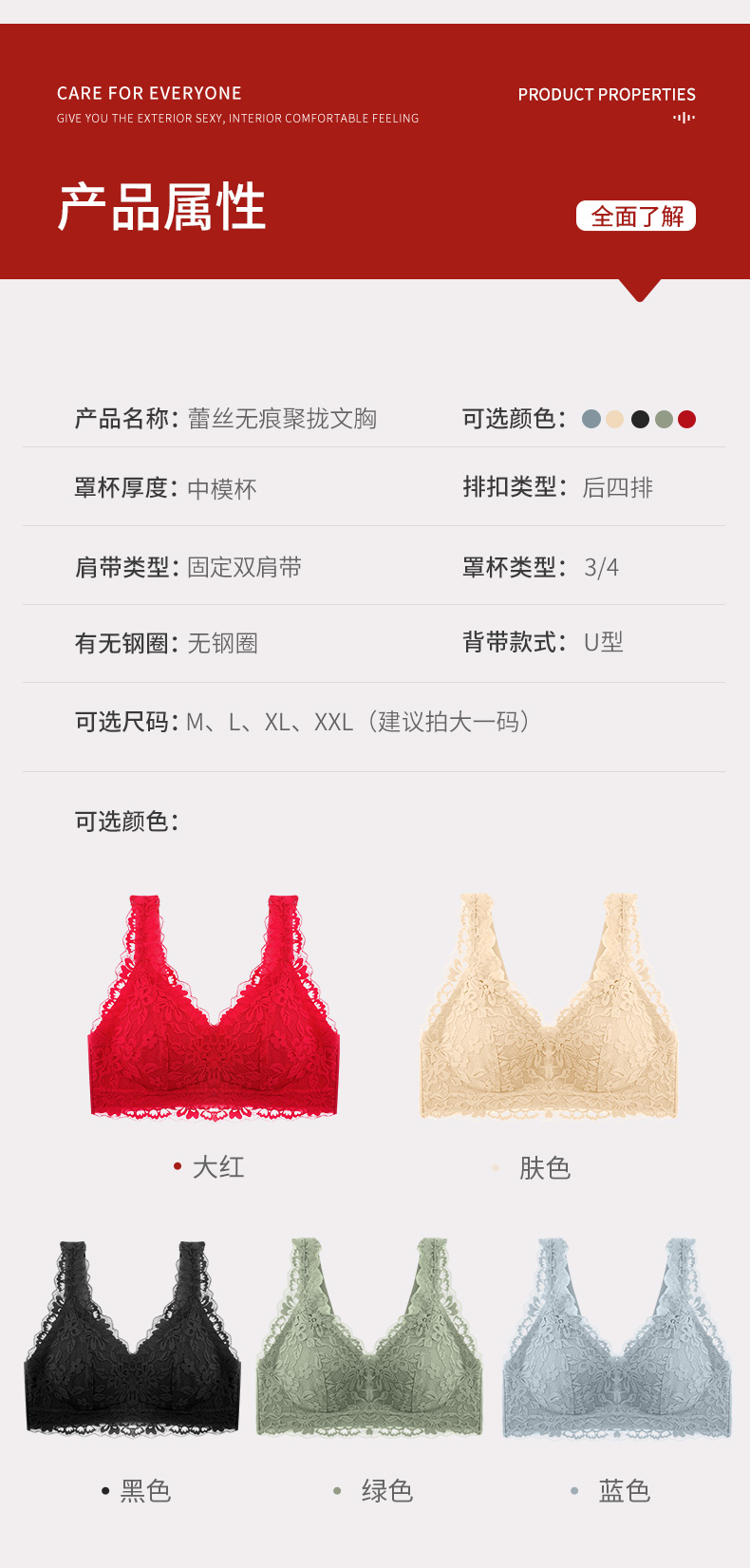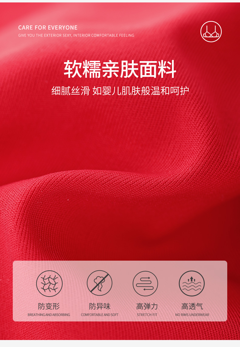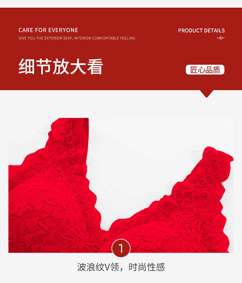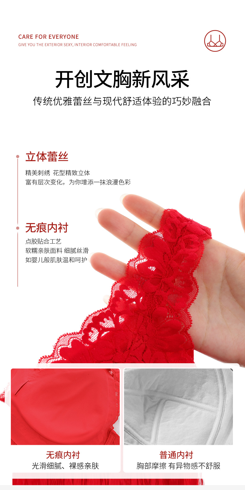 雅黛丽无痕内衣女小胸聚拢性感蕾丝文胸无钢圈薄杯本命年红色胸罩
