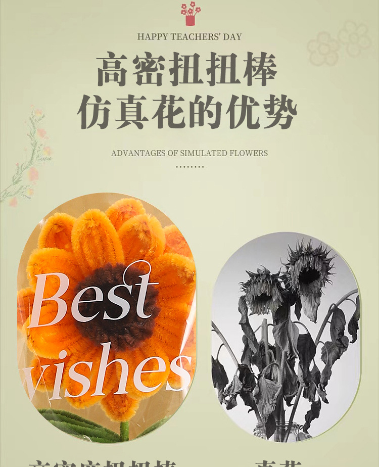 【教师节礼物❗扭扭棒仿真花】高密扭扭棒,色泽鲜艳,造型逼真,触感细腻,可长期保,手工diy材料向日葵花束幼儿园儿童送老师小礼品QQ