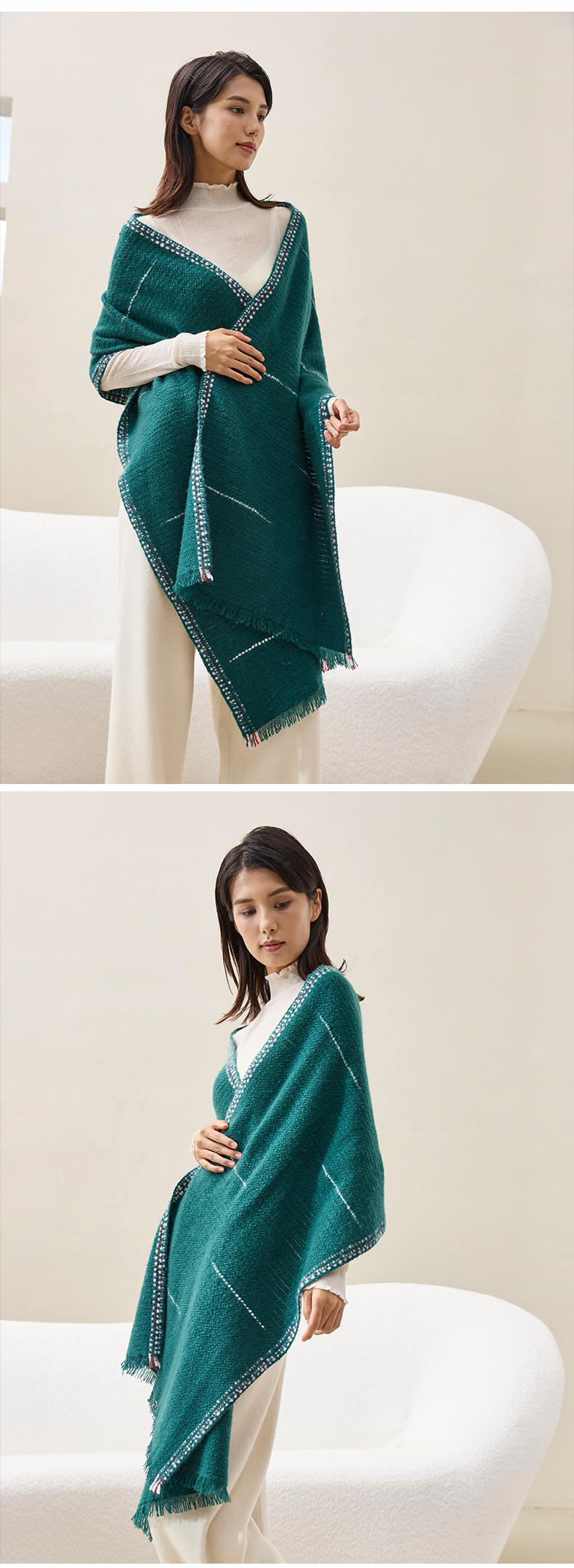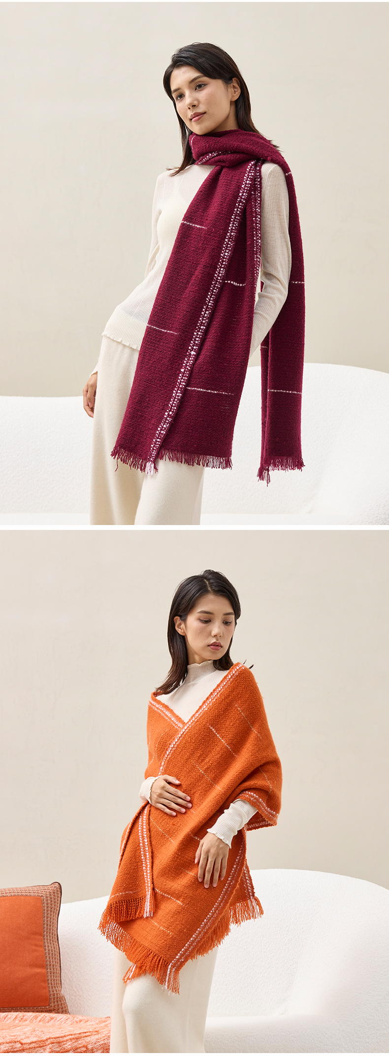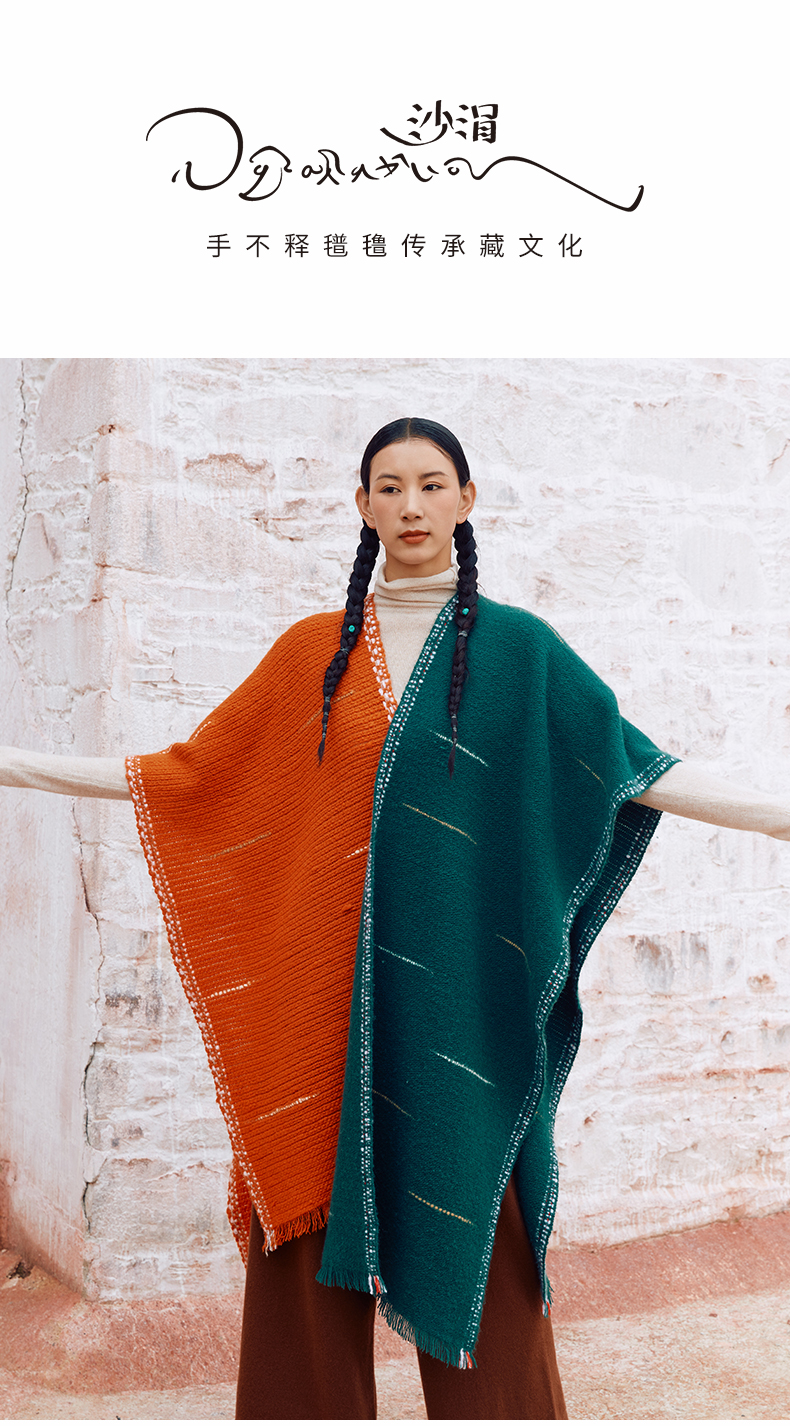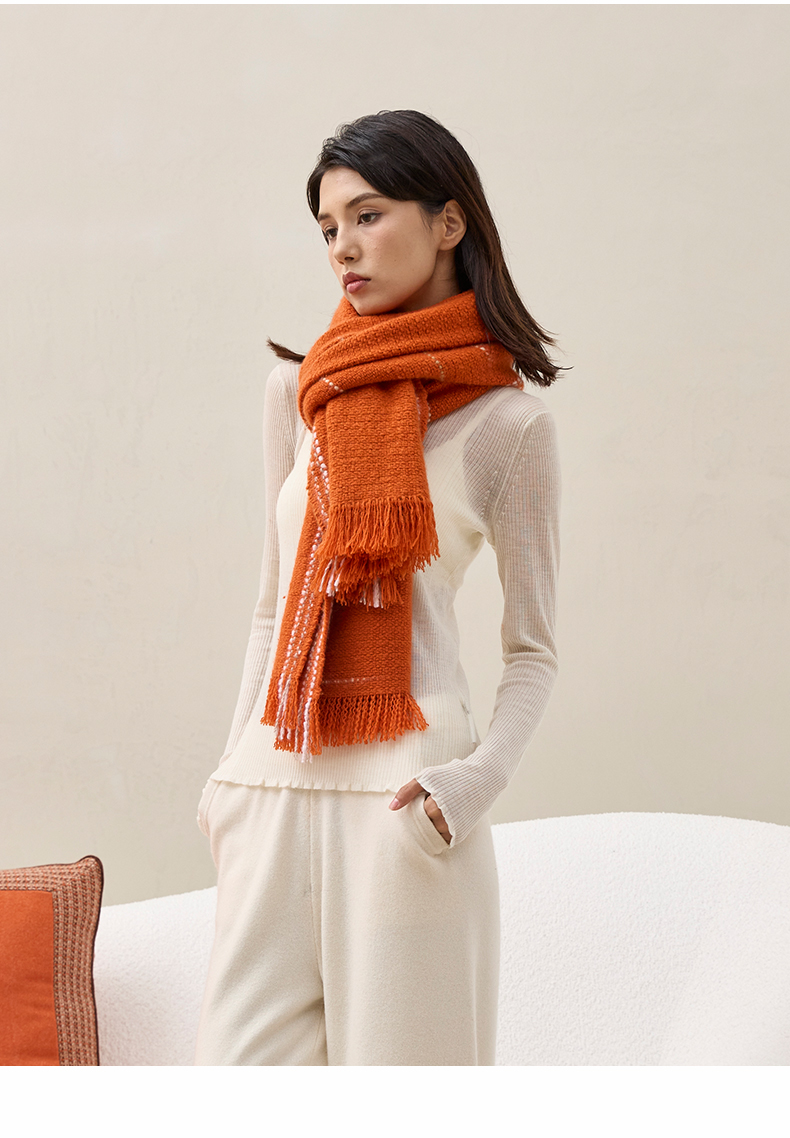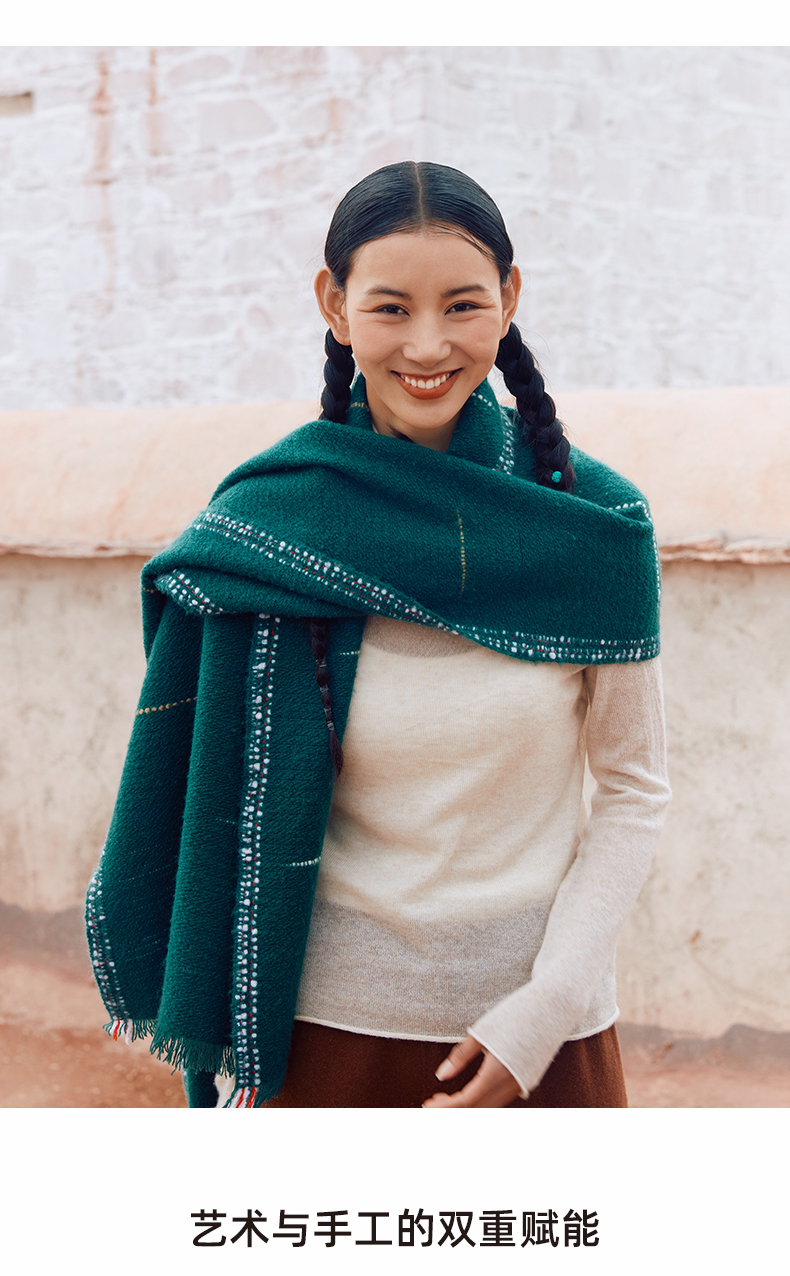 羊绒手工氆氇艺术浮线手捻围巾 SJF97P752A SJF97P752N