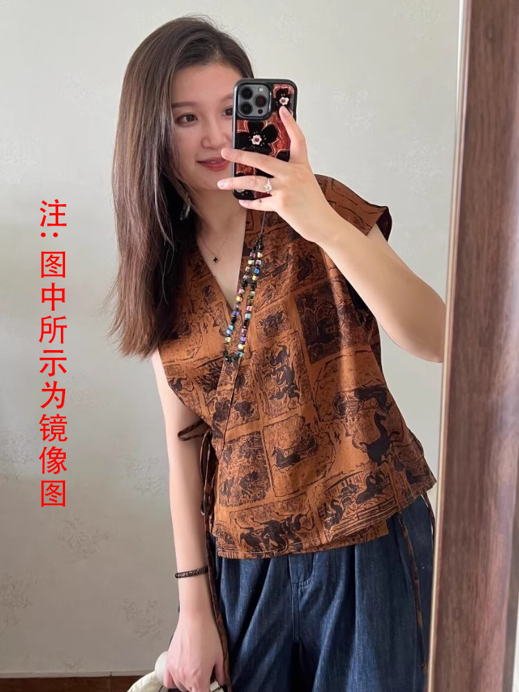 裁缝学苑AS534新中式V领斜襟系带小衫纸样茶服连肩背心衫打版