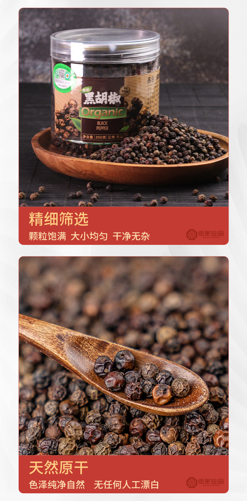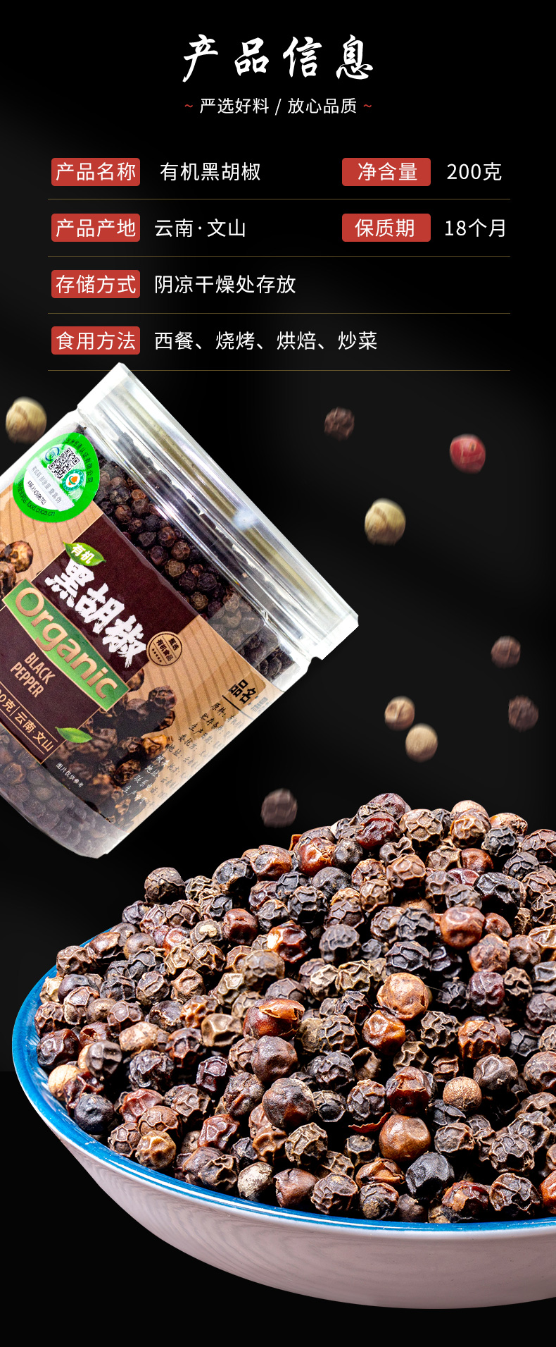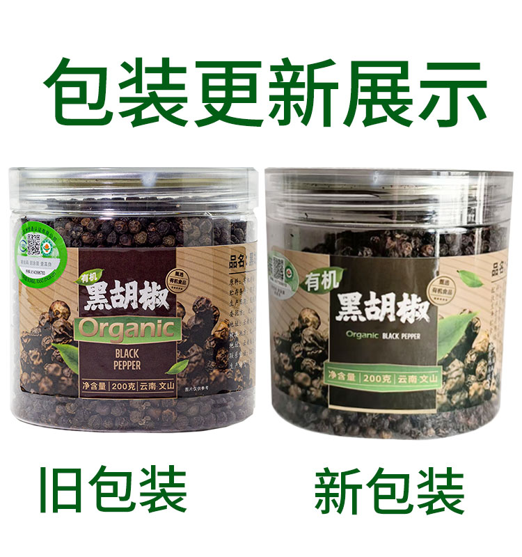 有机黑胡椒粒200g云南特产精选瓶装调味干货厨房卤料调料香辛家用食品包邮
