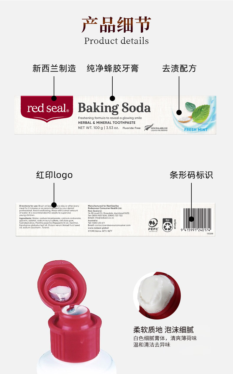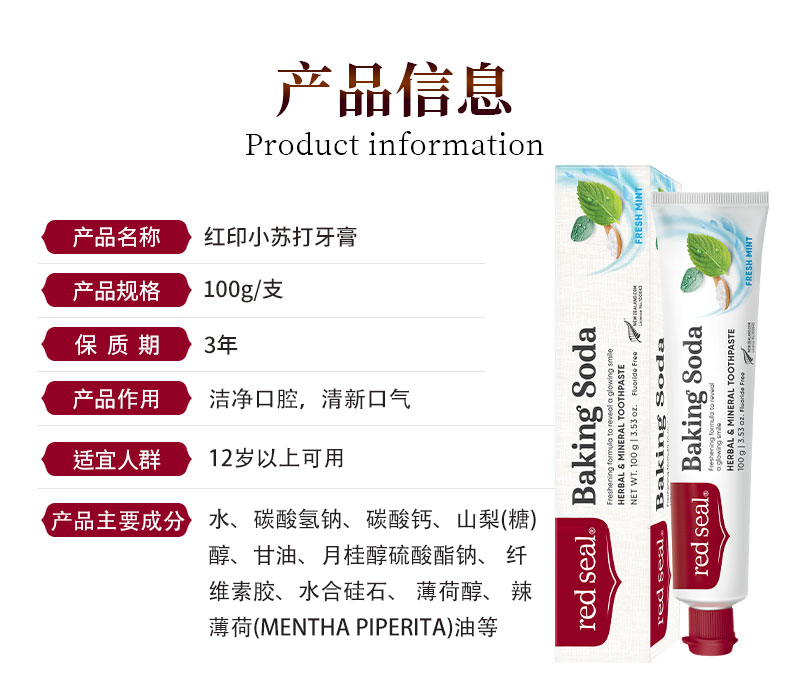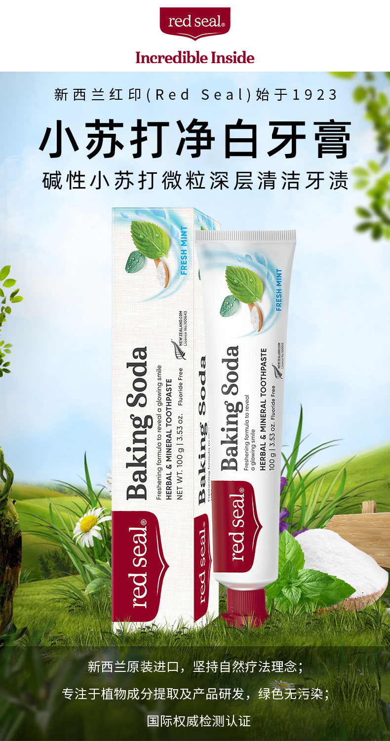 新西兰red sea 红印牙膏 小苏打 100g 有贴中标