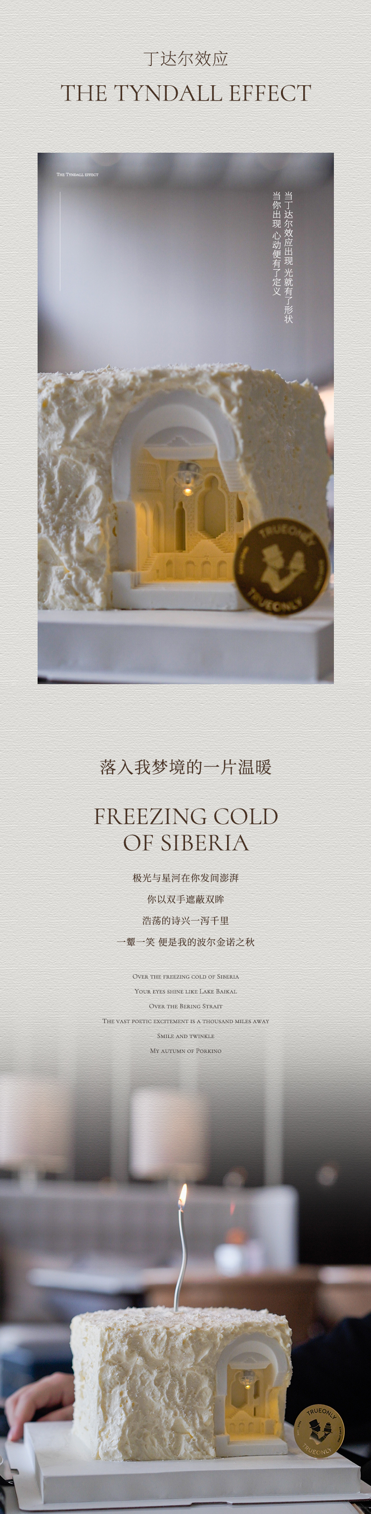 TRUEONLY寓意着创始人所追求的食必求真 (TRUE) 与独特不凡 (ONLY) 追寻手作甜品的艺术文化,探寻仪式感与幸福感的美学呈现,把生命的温暖制成生日蛋糕,与美好不期而遇