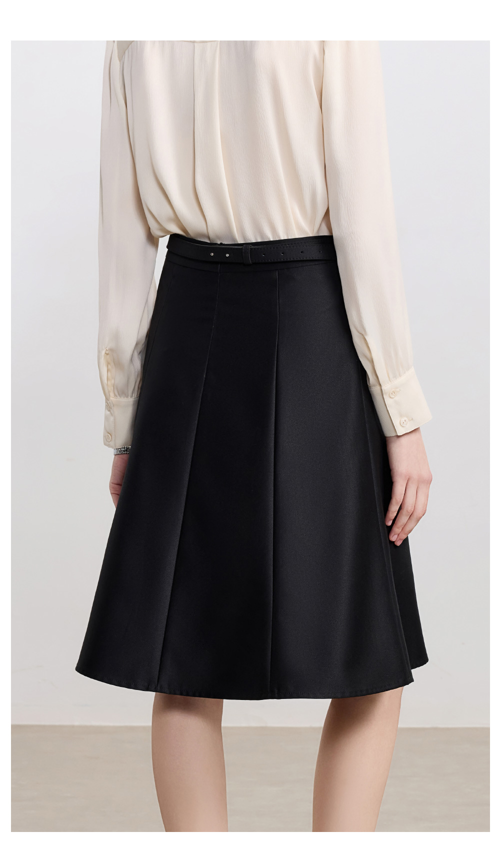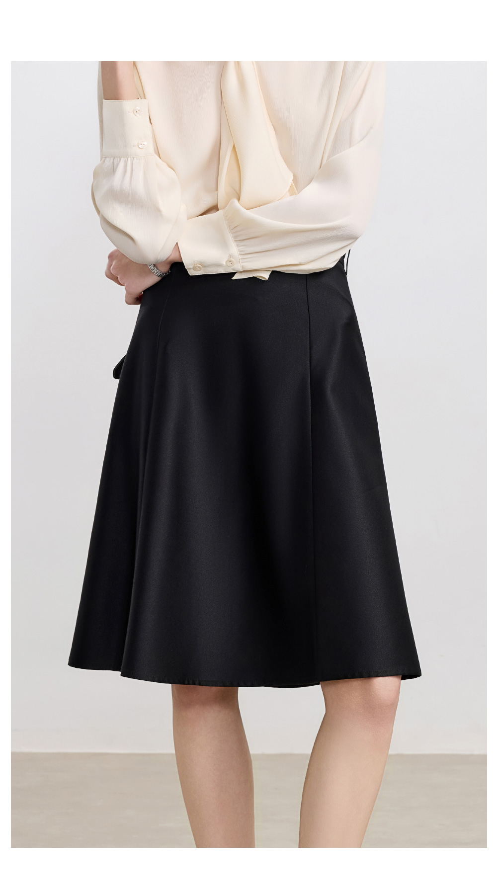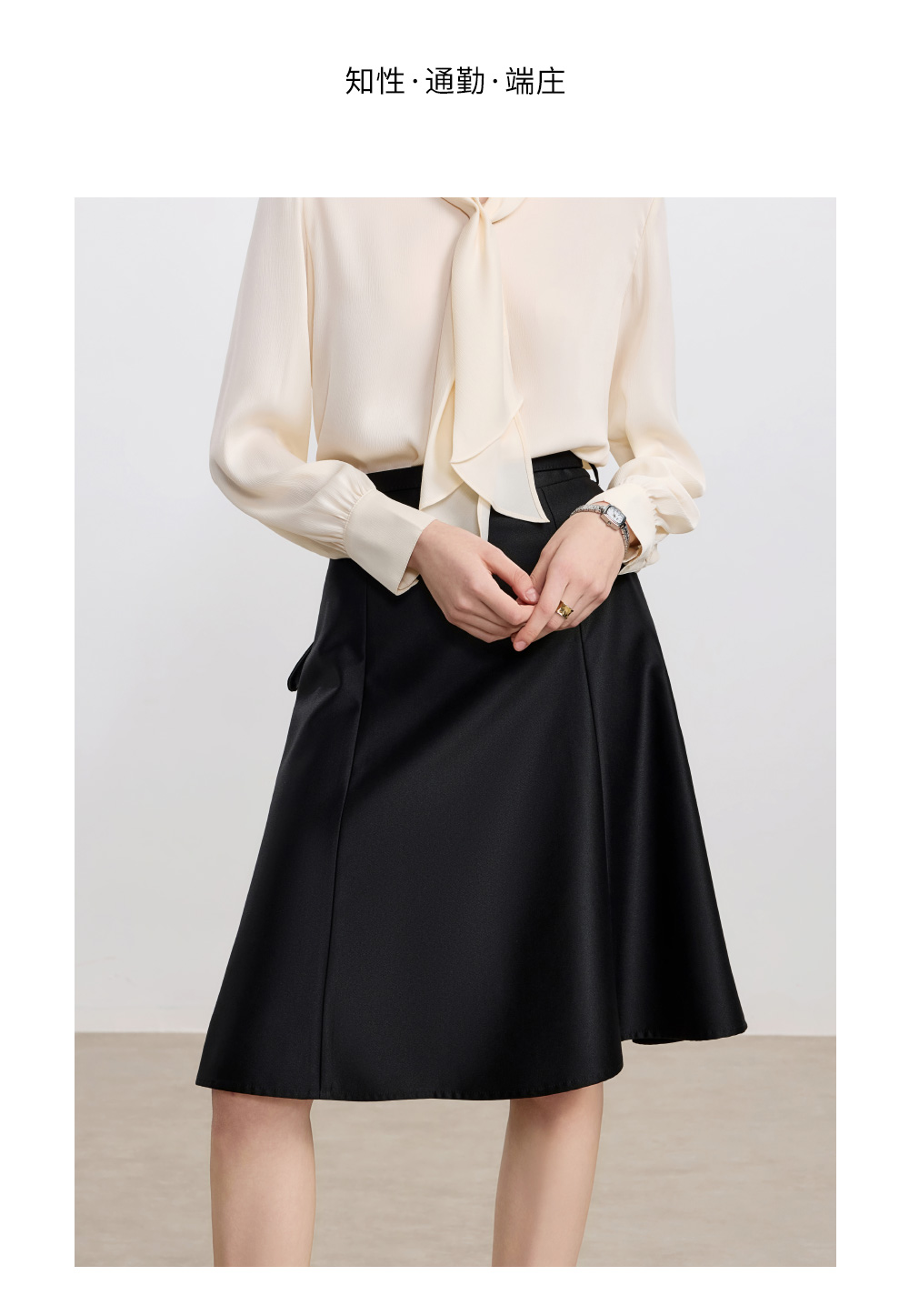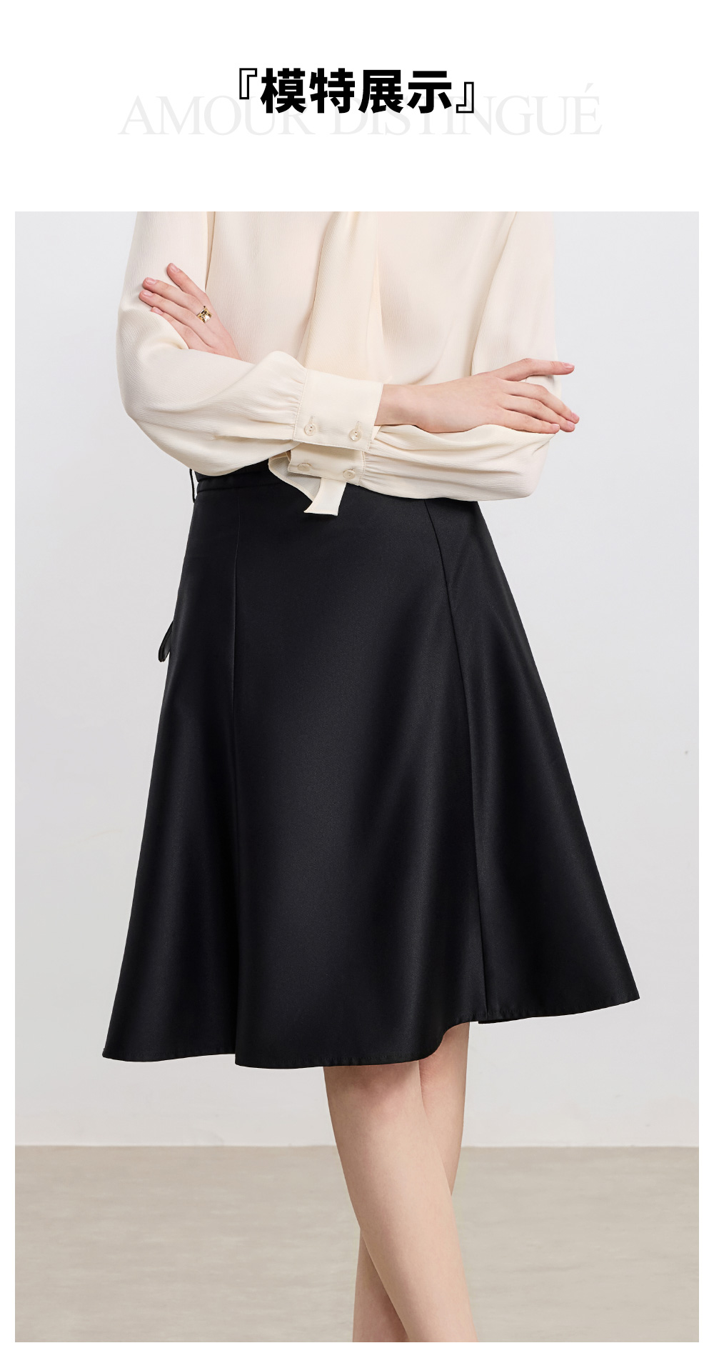 AD黑色皮裙女2025新款高端轻奢气质女神范中长款荷叶边A字半身裙