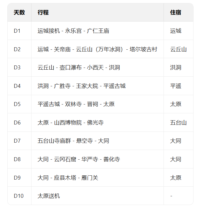 1,更深度的晋地人文领读:学者型老师带队+串联永乐宫(元代壁画瑰宝)、广仁王庙(现存最早唐代木构之一)、关帝庙、王家大院、平遥古城、五台山寺庙群等,从晋南到晋北,深度解读山西古建筑、宗教、晋商文化的演进脉络