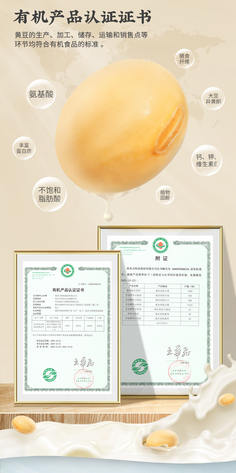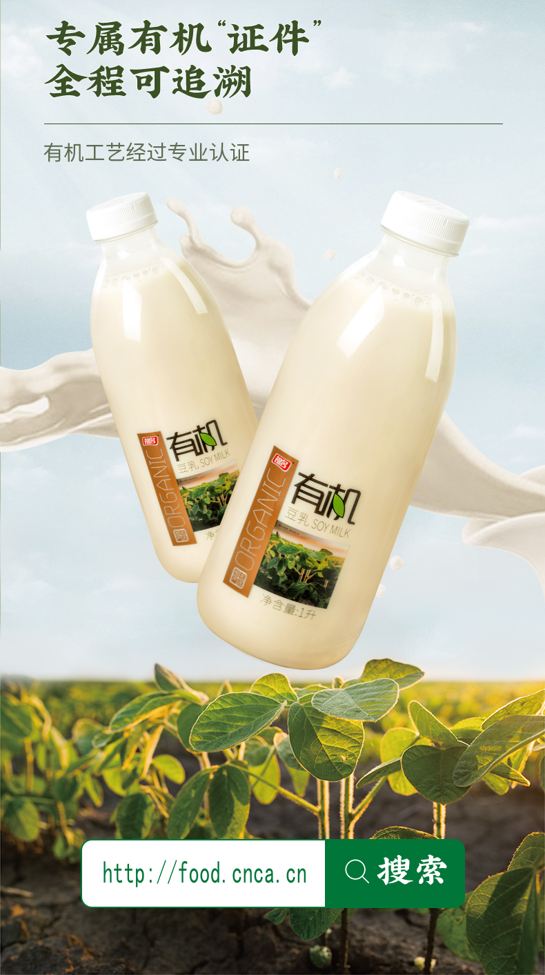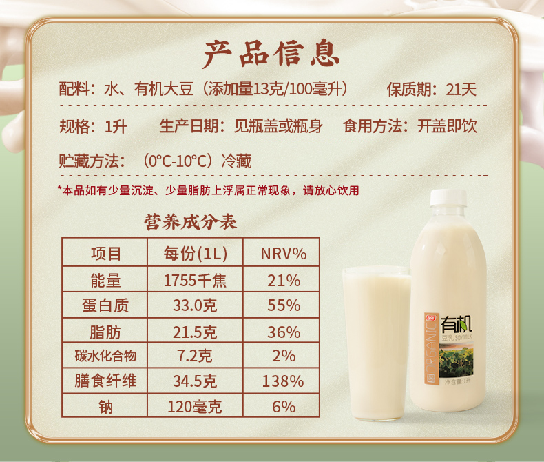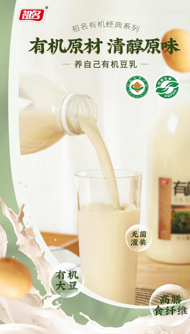 【3天内发货】祖名有机豆乳1L只有水和有机大豆0添加早餐代餐膳食纤维豆奶豆浆
