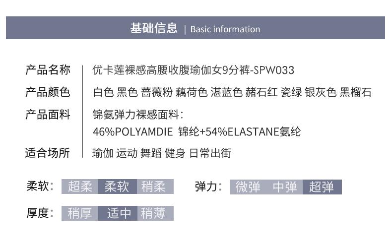优卡莲瑜伽裤SPW033裸感高腰收腹提臀修身春夏外穿九分裤瑜伽服女