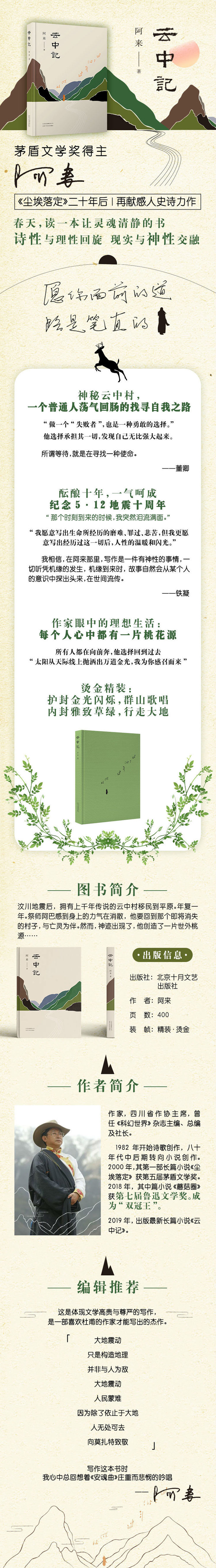 云中记 茅盾文学奖得主阿来 继尘埃落定二十年后再献神启之作 纪念汶川地震勇气励志文学 董卿