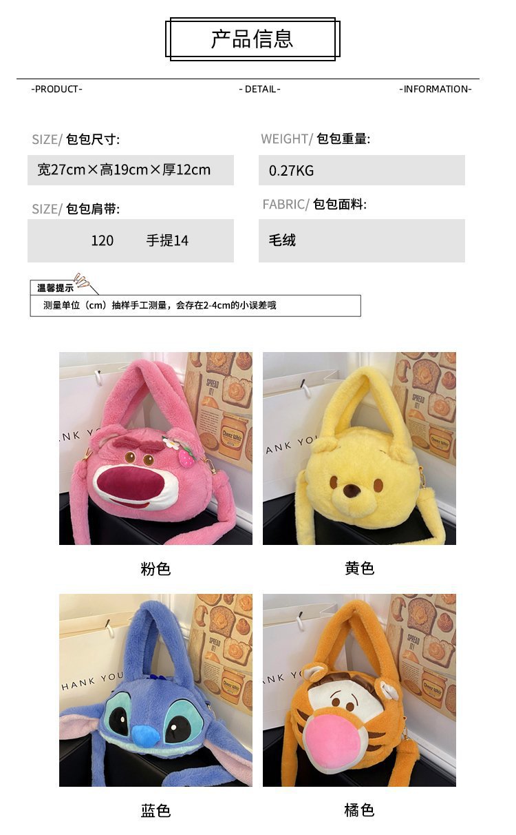 【超可爱❗️新款毛绒噗噗斜挎包】亲肤舒适JK史迪仔手提包维尼熊大容量单肩包QQ