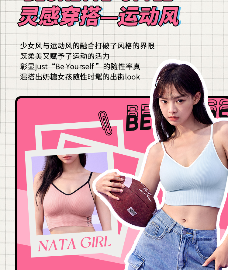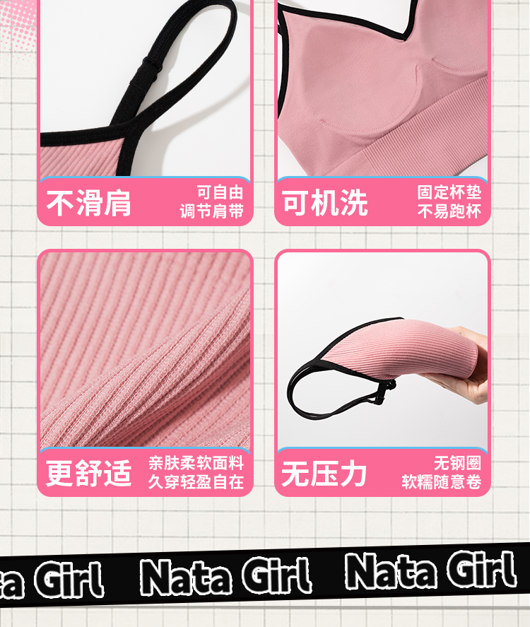[香芋派]背心式内衣女无钢圈固定胸垫大胸运动文胸