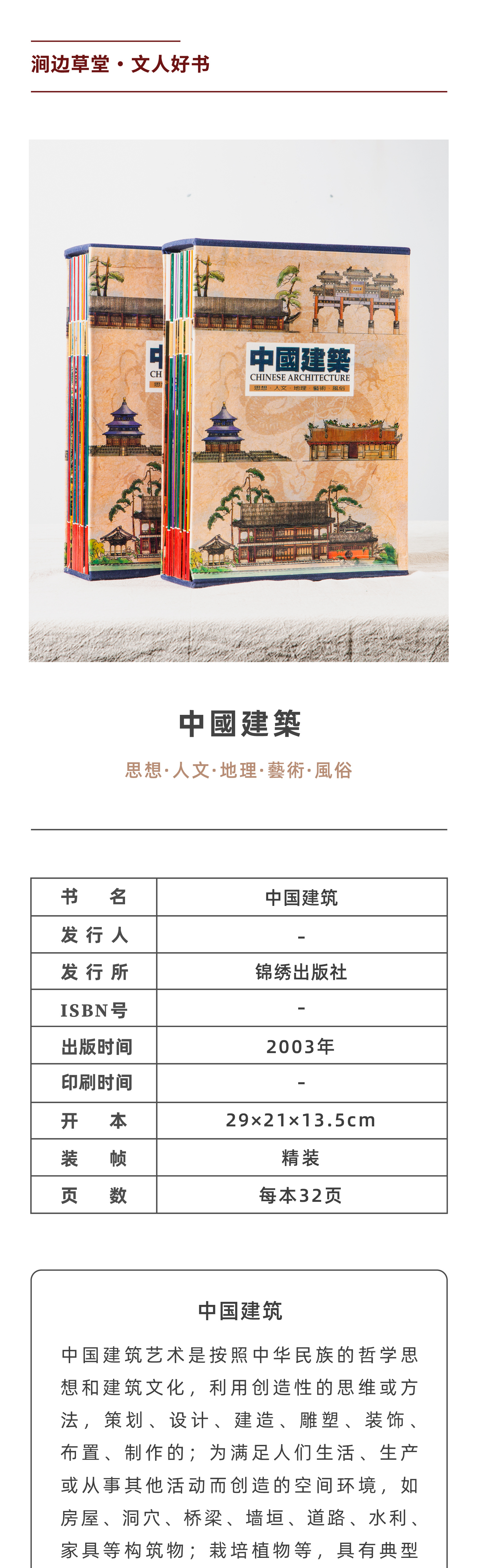 【绝版好书】《中国建筑》两函36册全,16开,2003年台锦绣初版