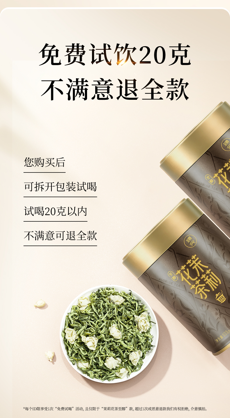 【臻尖-花至醇】新花新茶茉莉飘雪花茶四川茉莉花茶100g*2罐