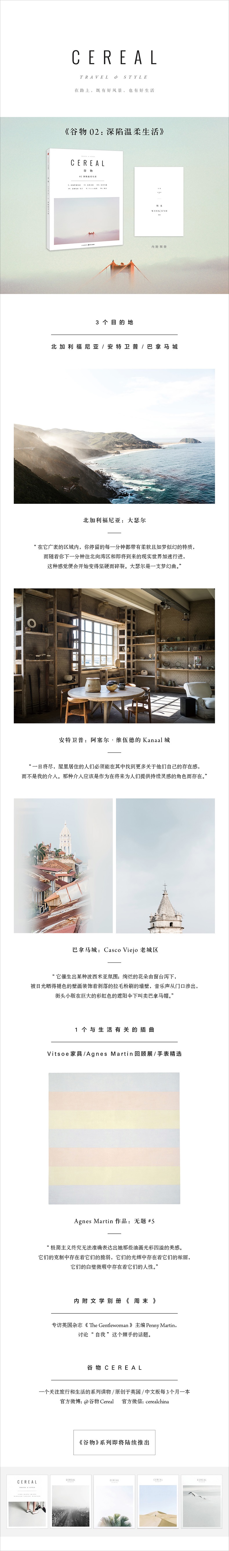 《谷物》(Cereal)是一系列关注旅行与生活方式的读物。2012年创刊于英国,美丽且有性格。中文版每3个月一本。
